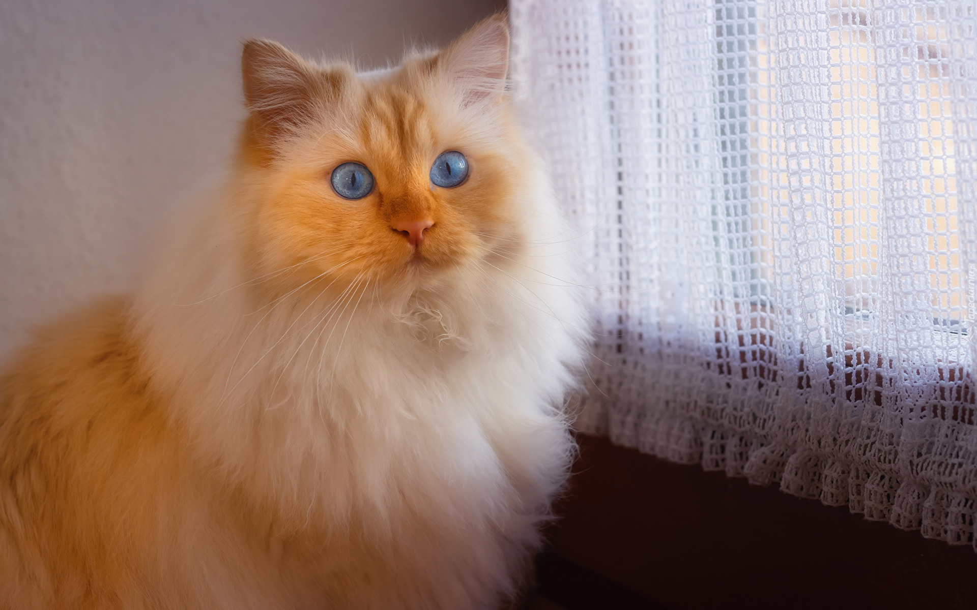 Edytor tapety: Rudy niebieskooki kot przy oknie