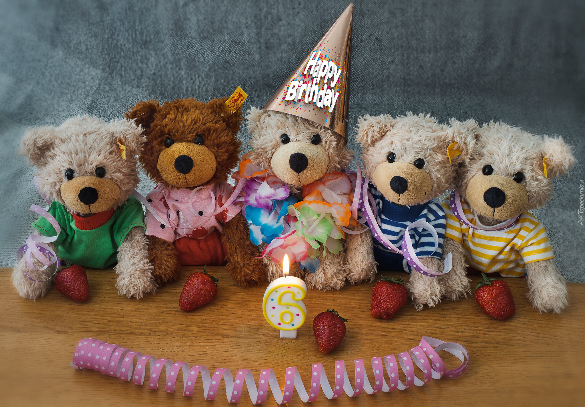 Edytor tapety: Misie i świeczka na szóste urodziny
