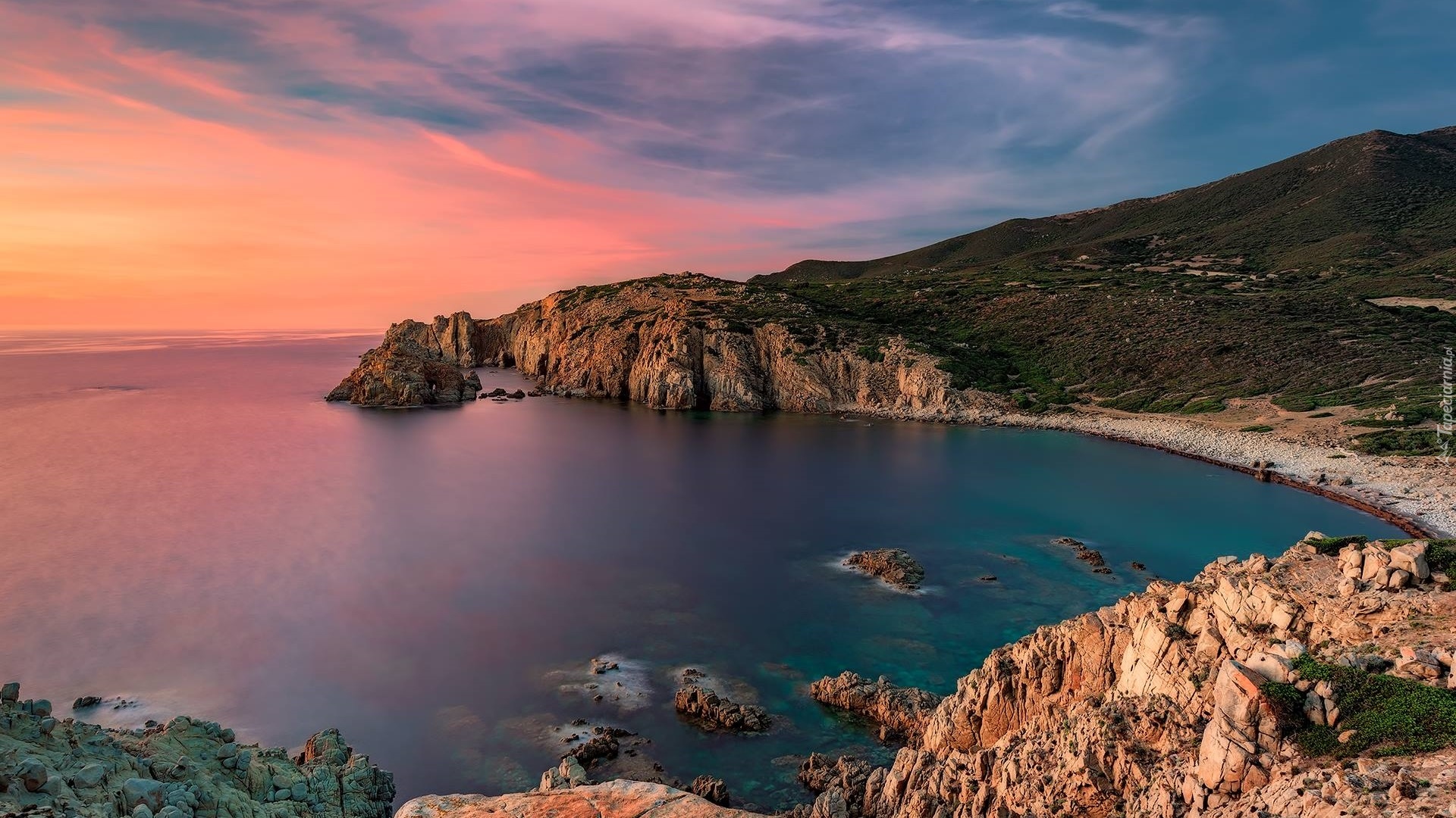 Edytor tapety: Morze i skały o wschodzie słońca