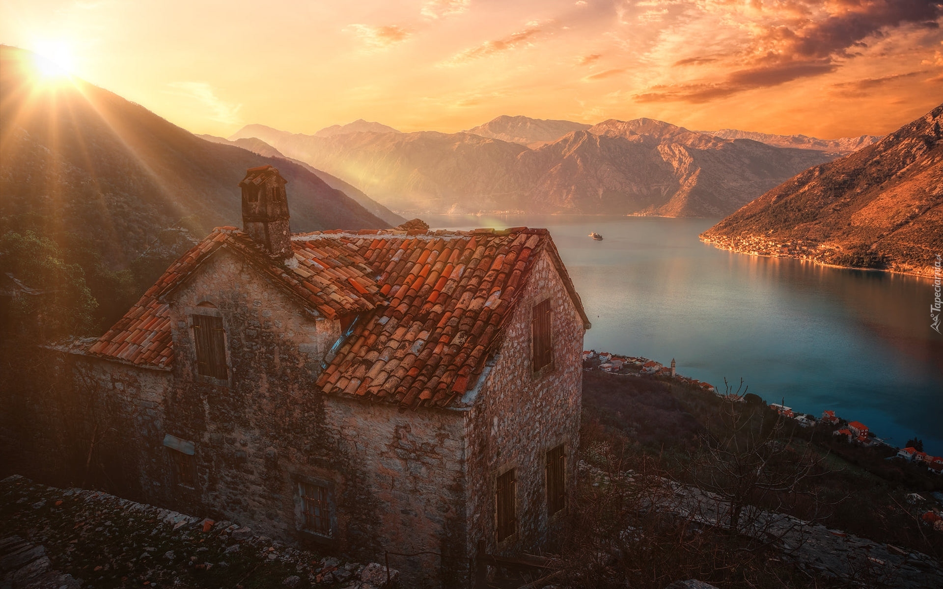 Edytor tapety: Dom na tle gór i Zatoki Kotorskiej
