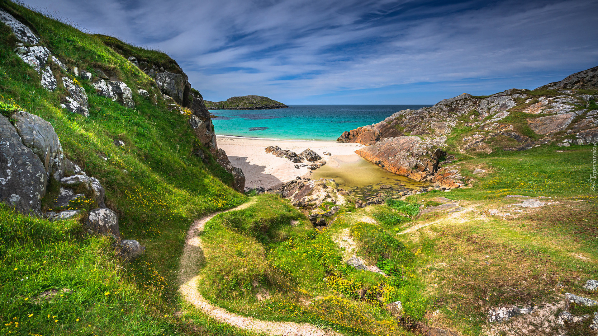 Edytor tapety: Ścieżka obok skał prowadząca na plażę