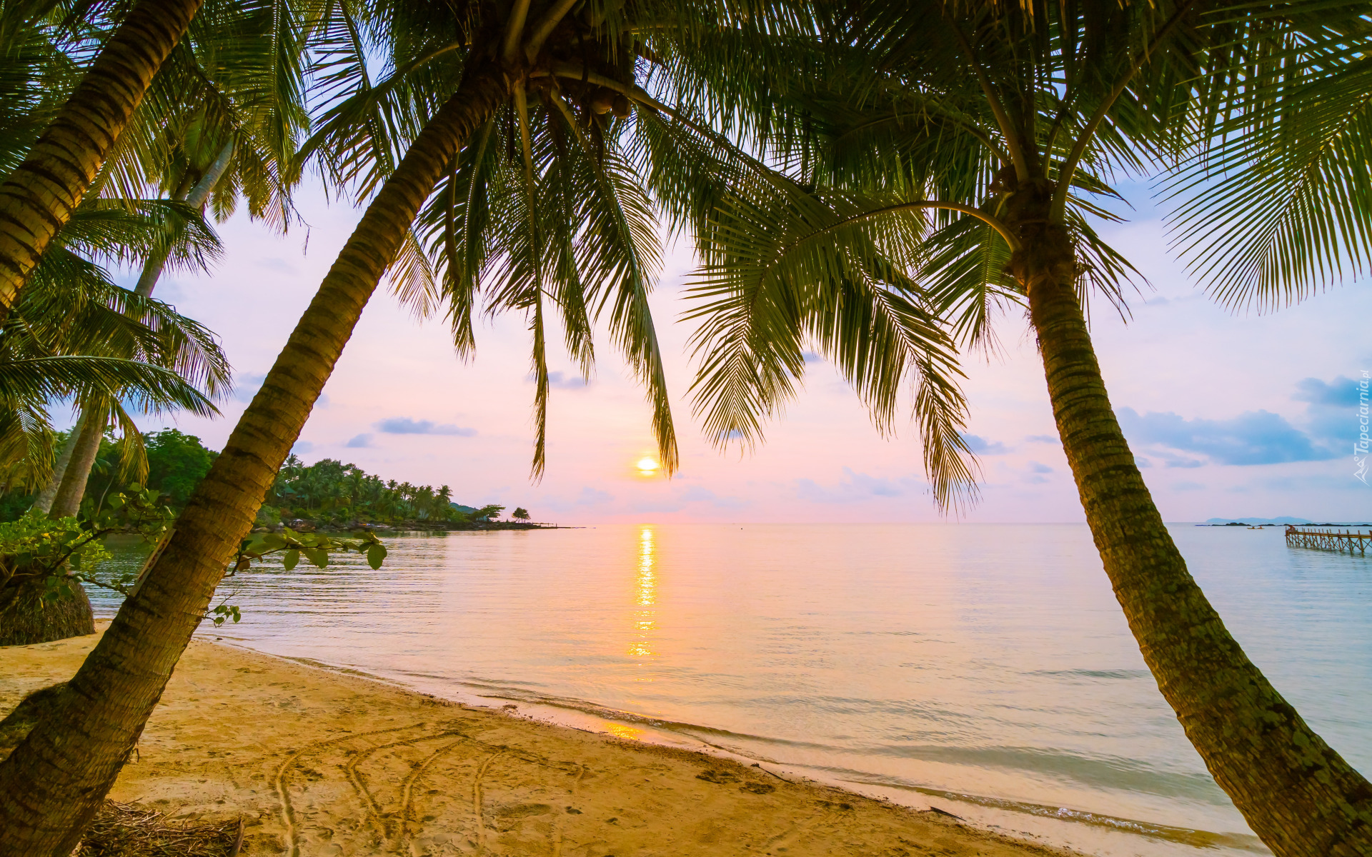 Edytor tapety: Palmy na plaży o zachodzie słońca