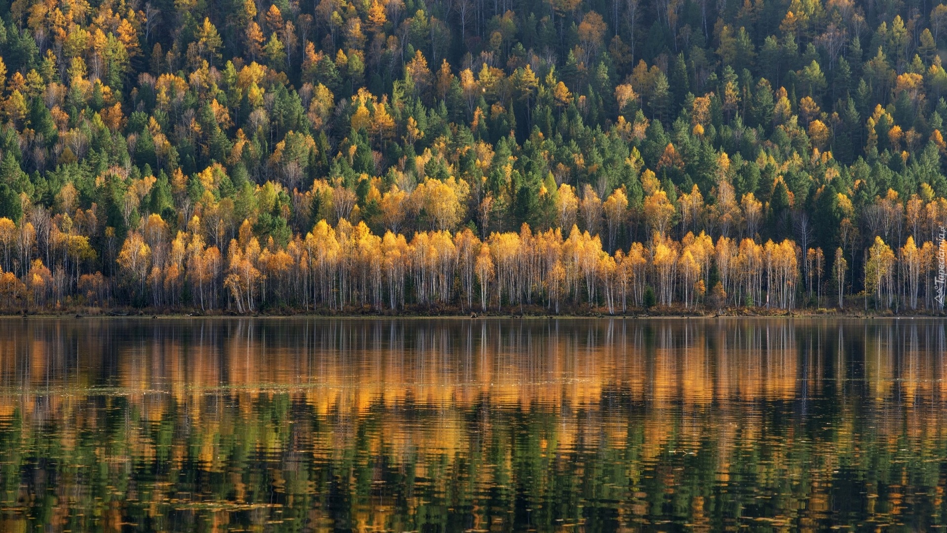 Edytor tapety: Kolorowe jesienne drzewa nad rzeką