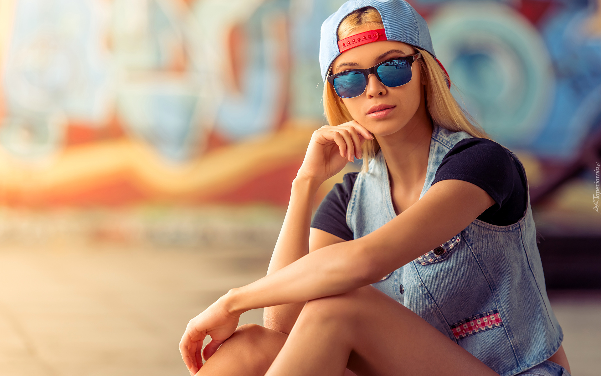 Edytor tapety: Blondynka w okularach i czapce