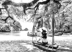 Edytor tapety: Kobieta na huśtawce przy zatoce wyspy Ko Lao