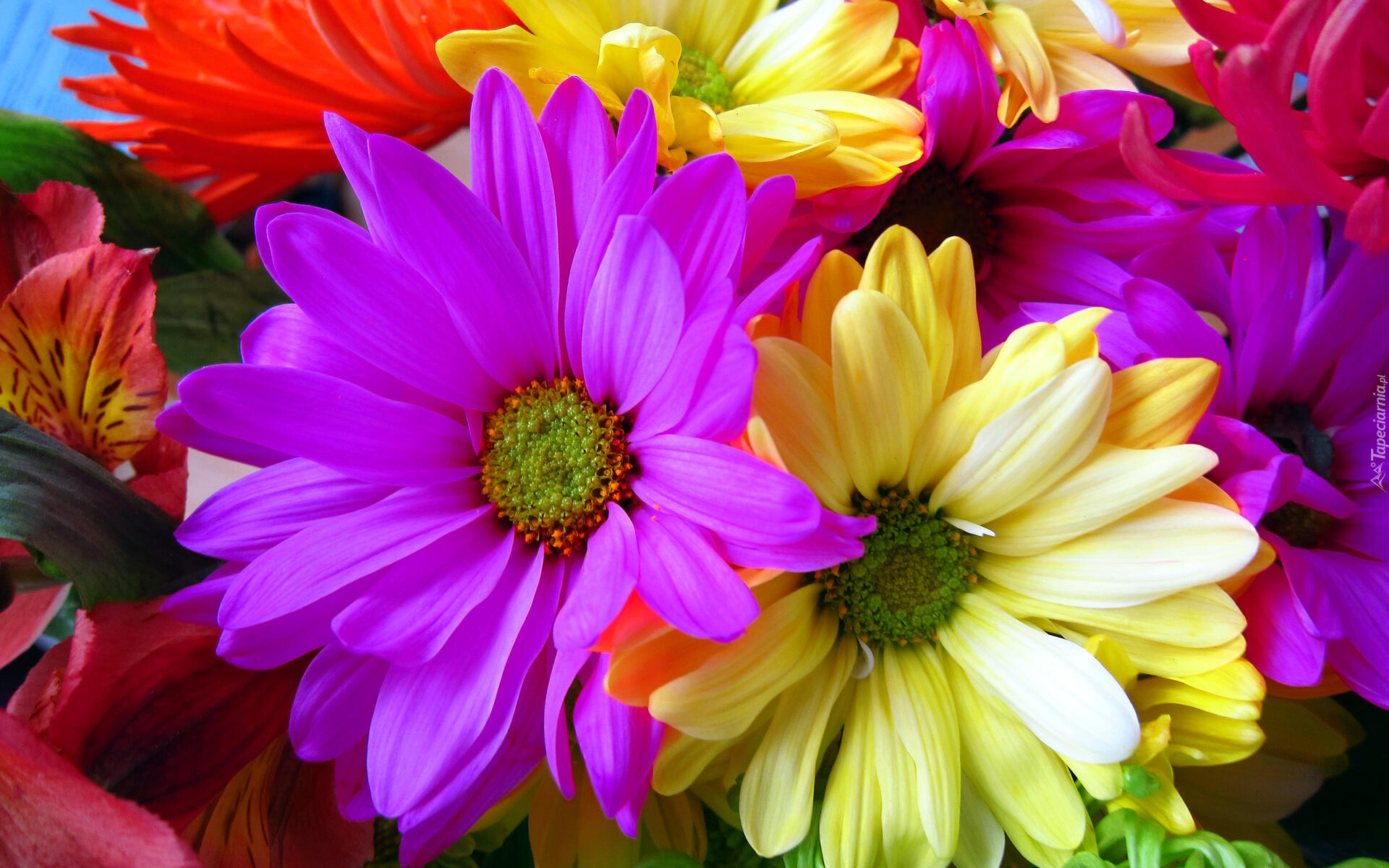 Edytor tapety: Chryzantemy kolorowe w zbliżeniu