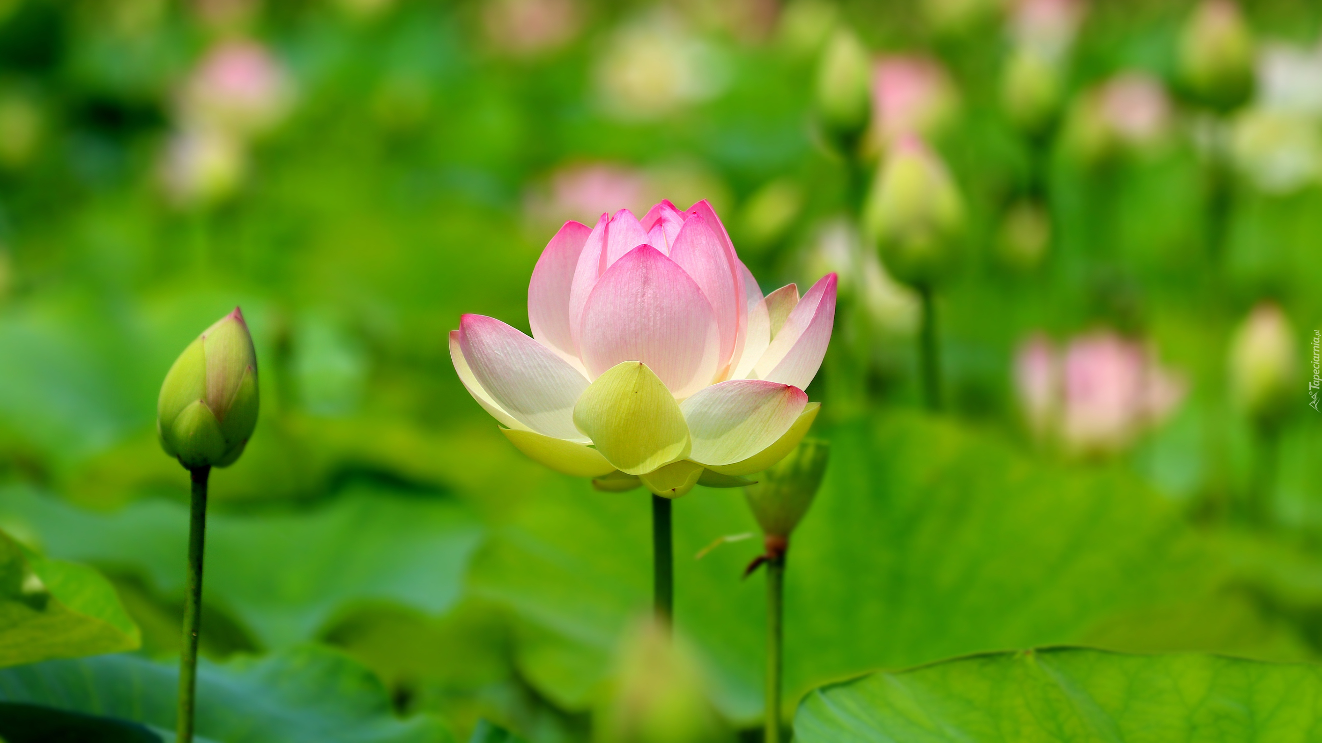 Edytor tapety: Jasnoróżowy rozwinięty lotos i pąki