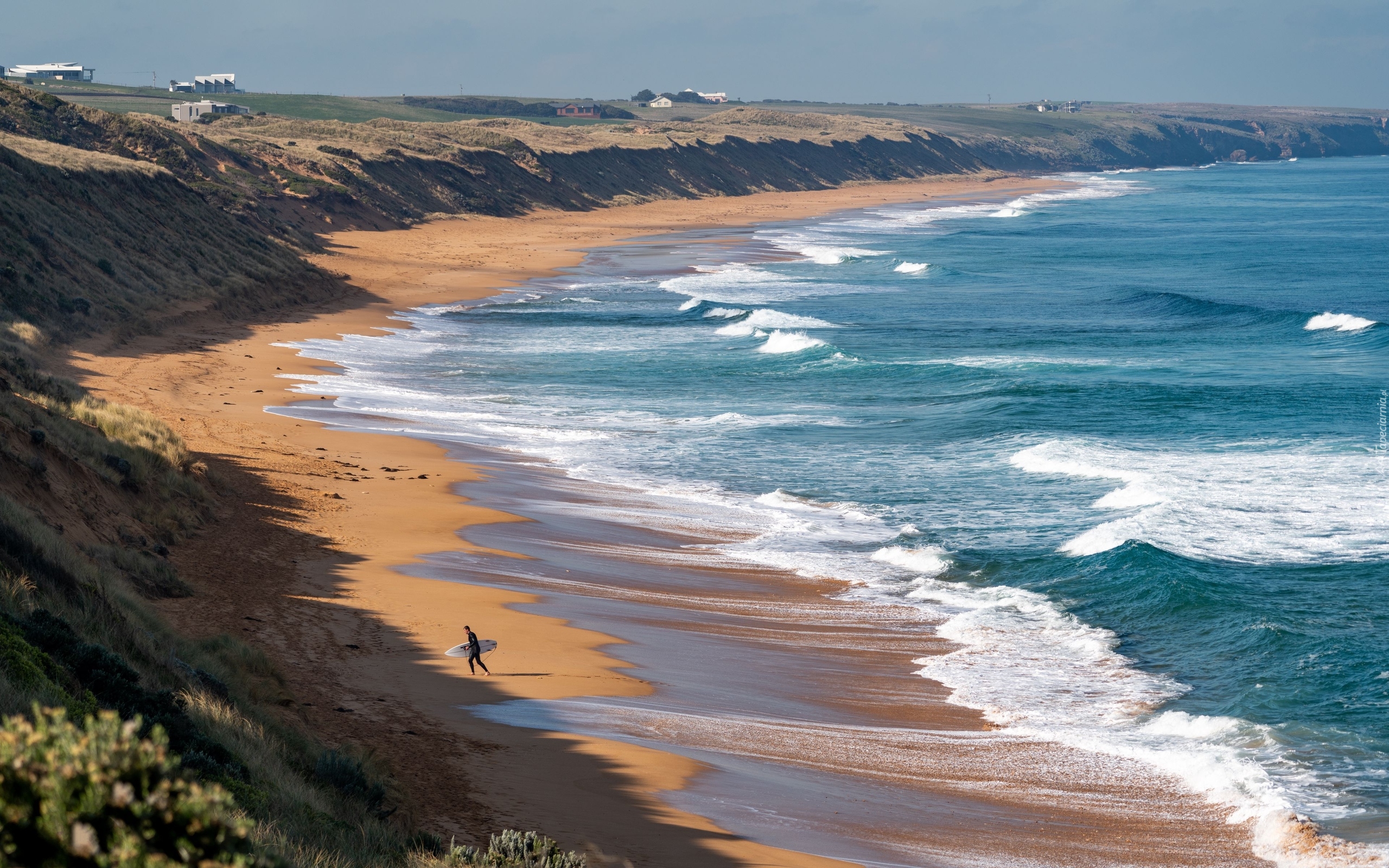 Edytor tapety: Surfer i fale na morskiej plaży