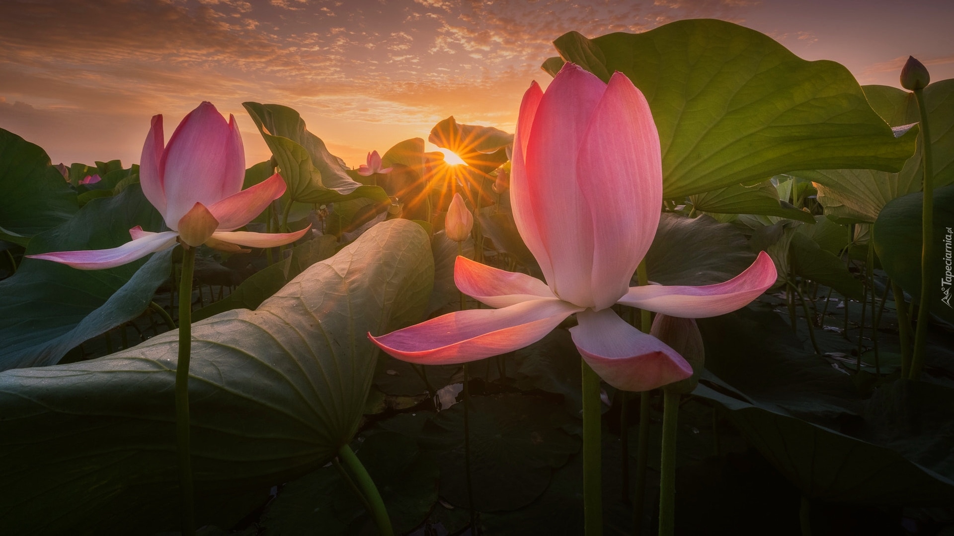 Edytor tapety: Kwiaty lotosu w promieniach słońca