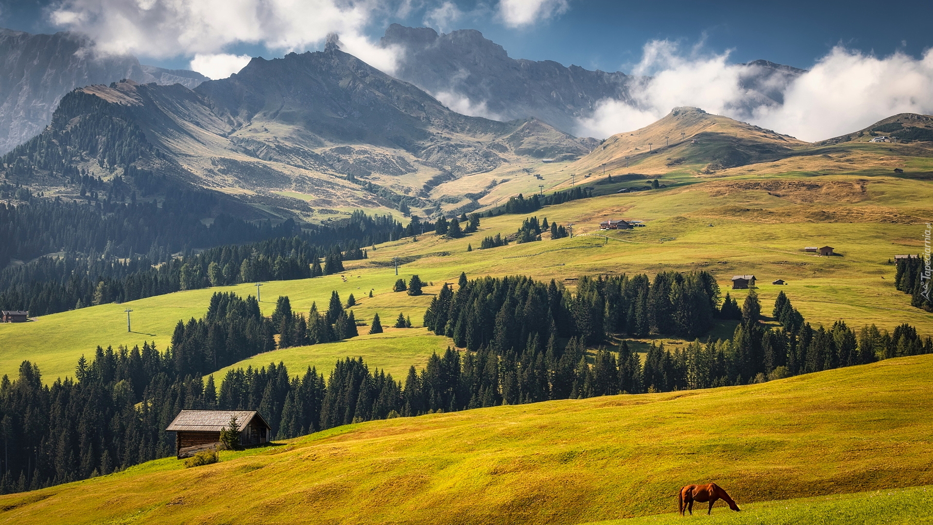 Edytor tapety: Widok na łąki i góry