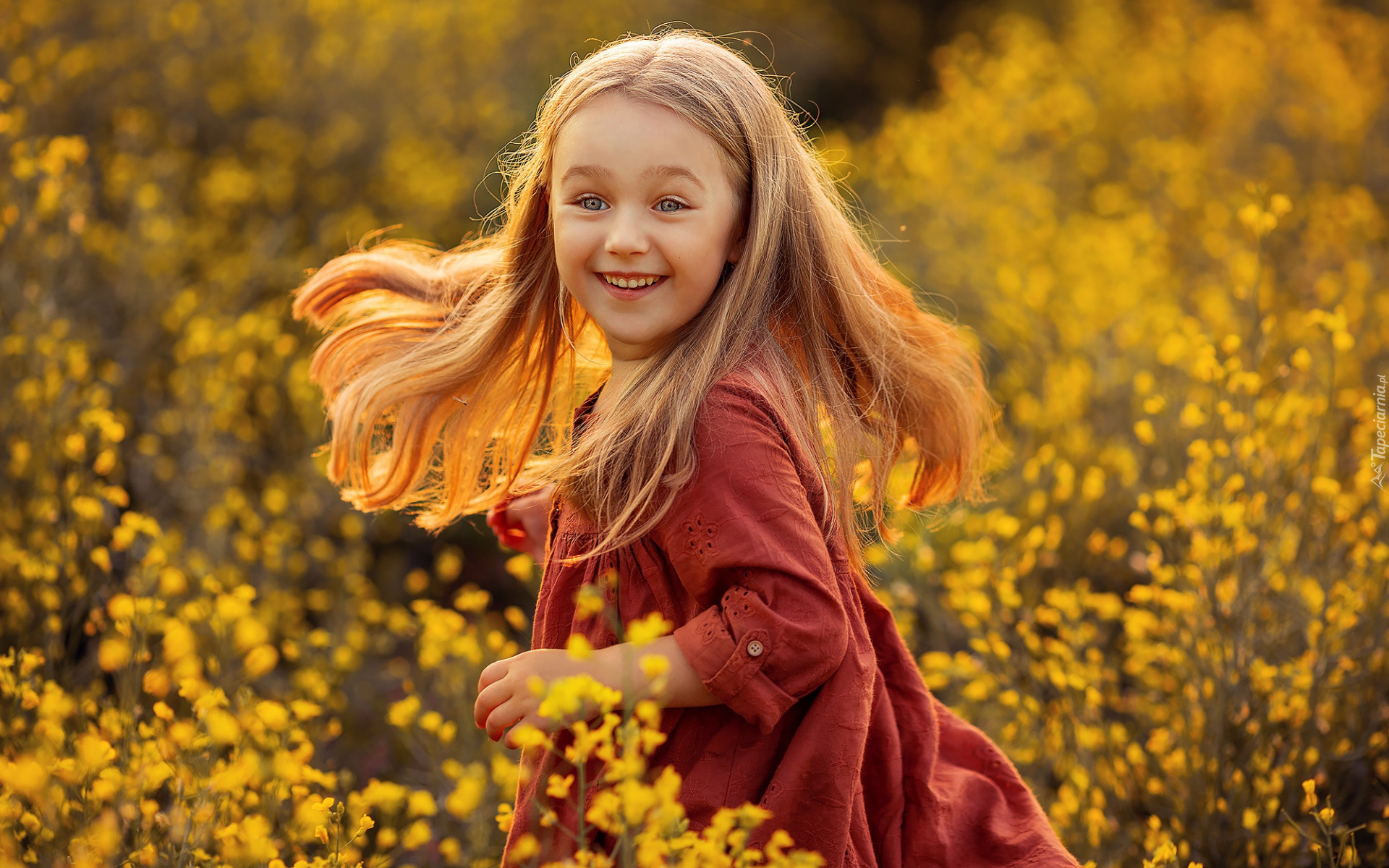 Edytor tapety: Uśmiechnięta długowłosa dziewczynka na łące