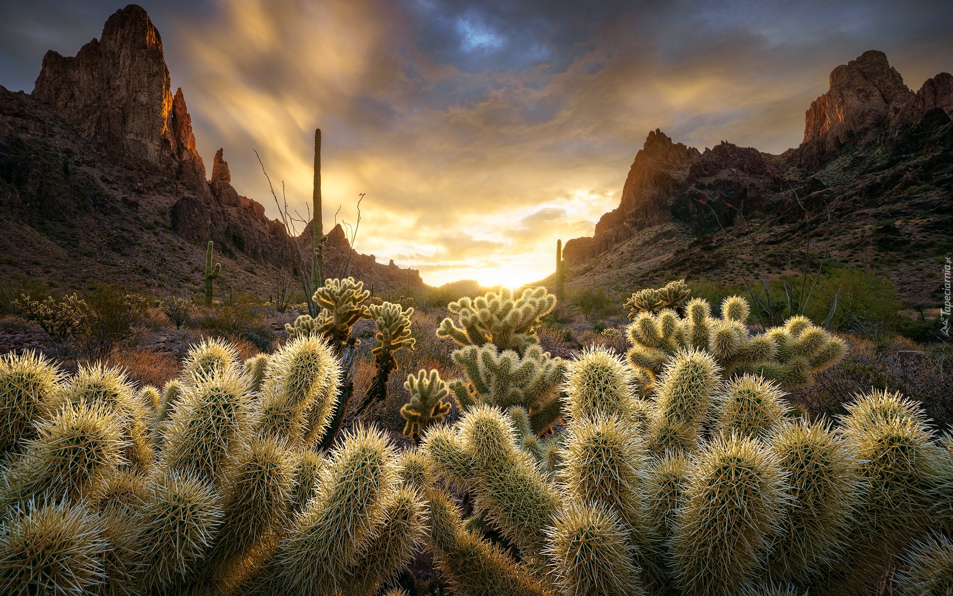Edytor tapety: Kaktusy na tle gór