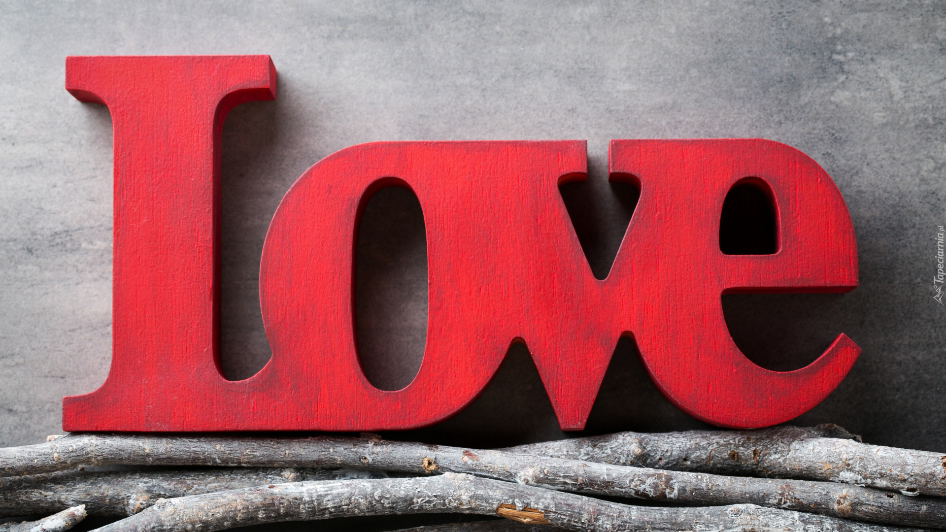 Edytor tapety: Napis Love na gałązkach