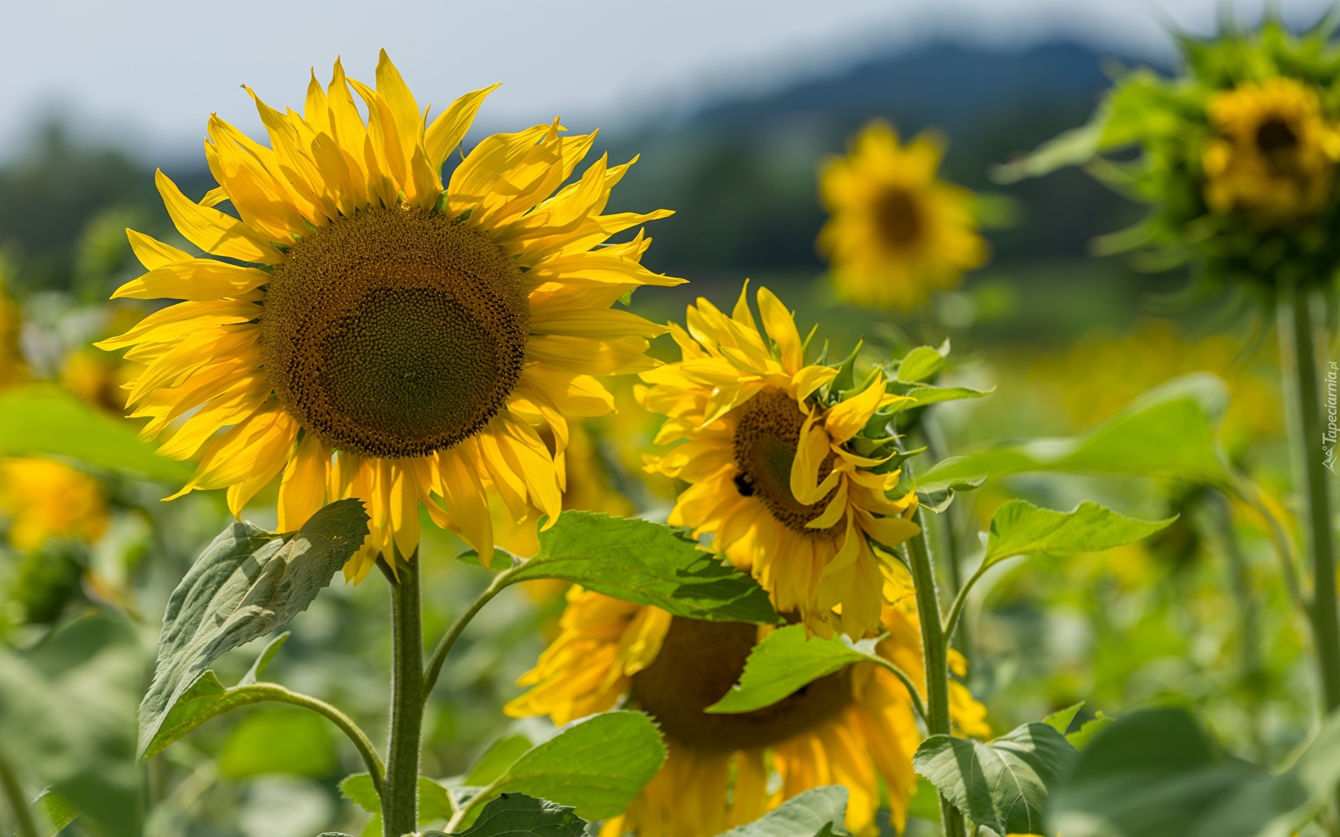 Edytor tapety: Rozkwitnięte słoneczniki na polu