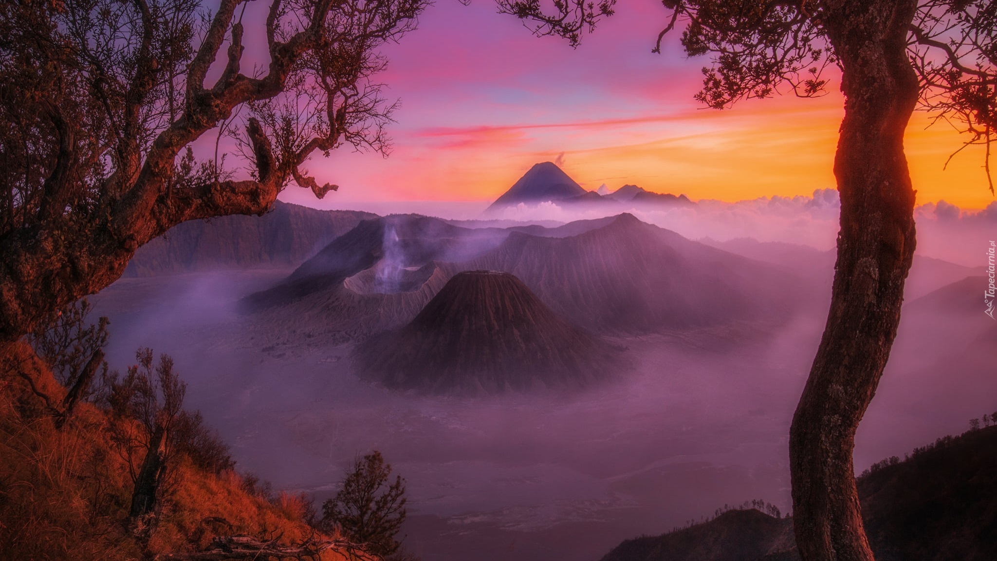 Edytor tapety: Wulkany otulone mgłą na Wyspie Jawa