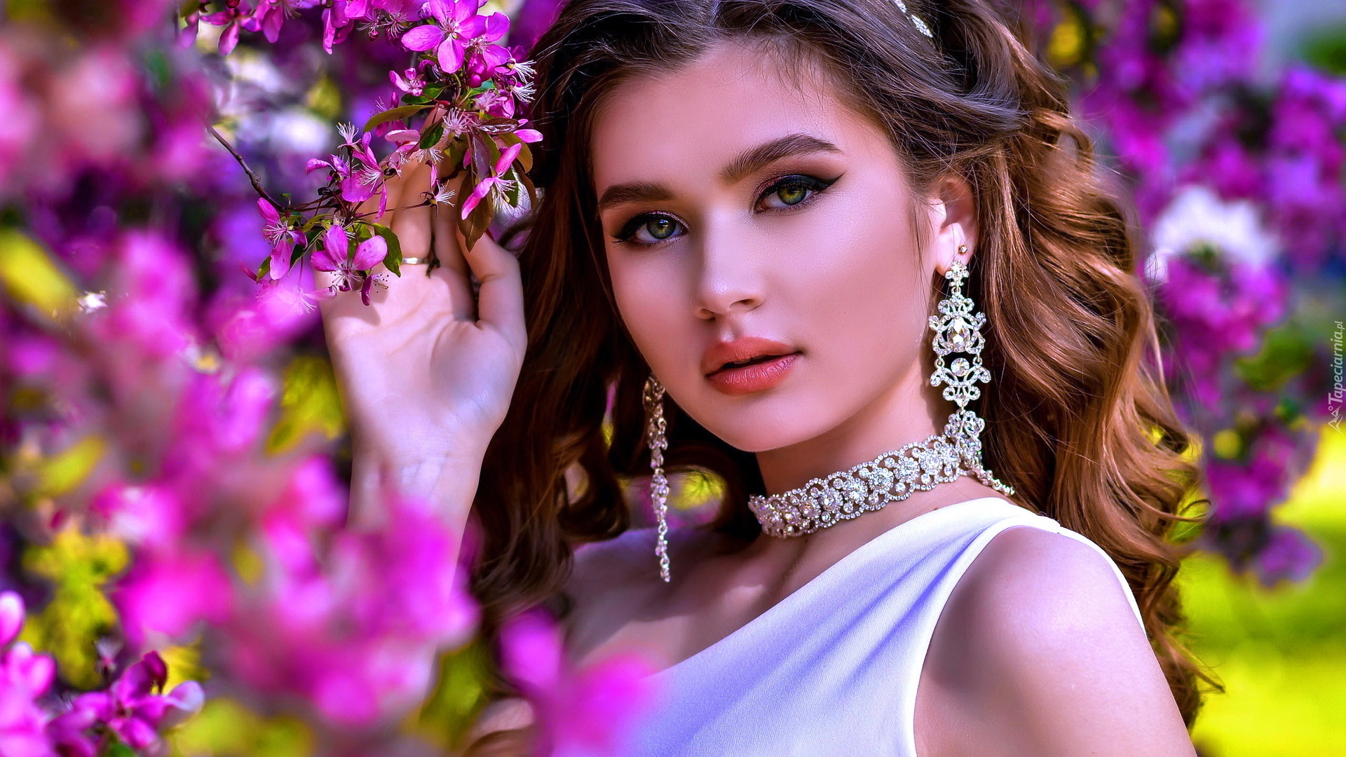 Edytor tapety: Kobieta ze srebrnym naszyjnikiem