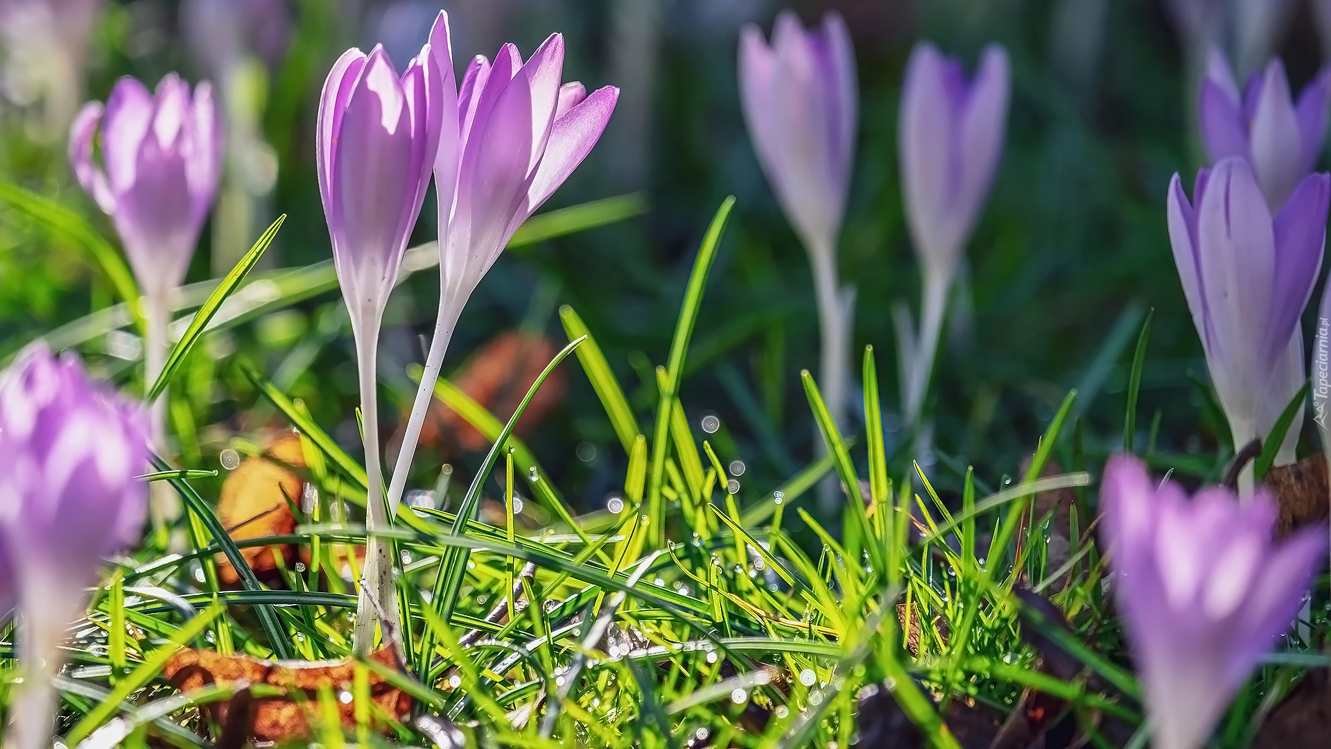 Edytor tapety: Krokusy w rozświetlonej trawie