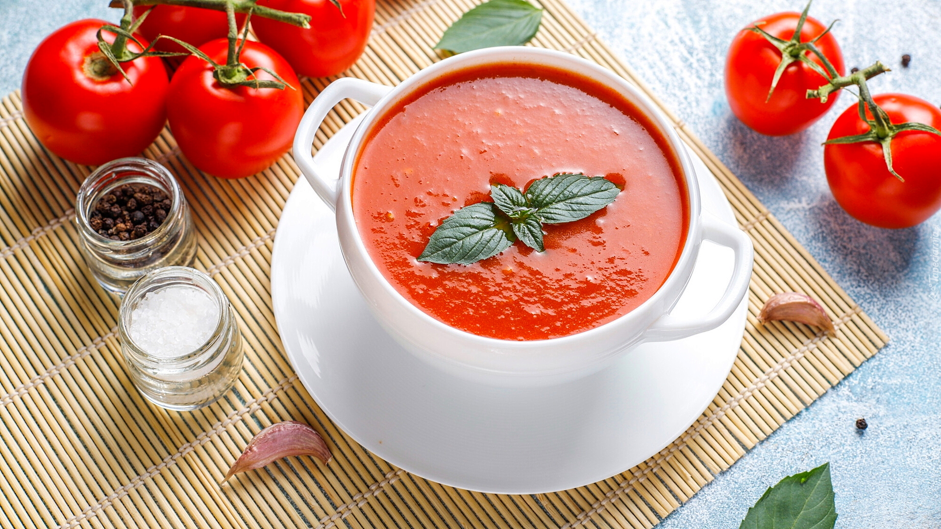 Edytor tapety: Zupa pomidorowa w bulionówce