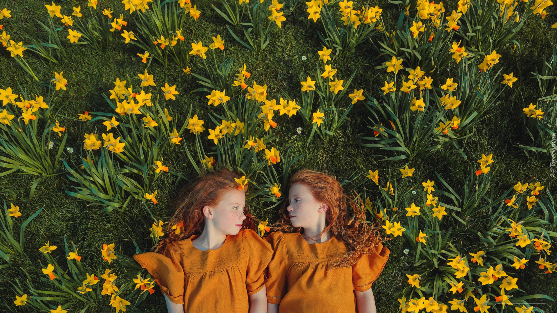 Edytor tapety: Dziewczynki leżące wśród żonkili