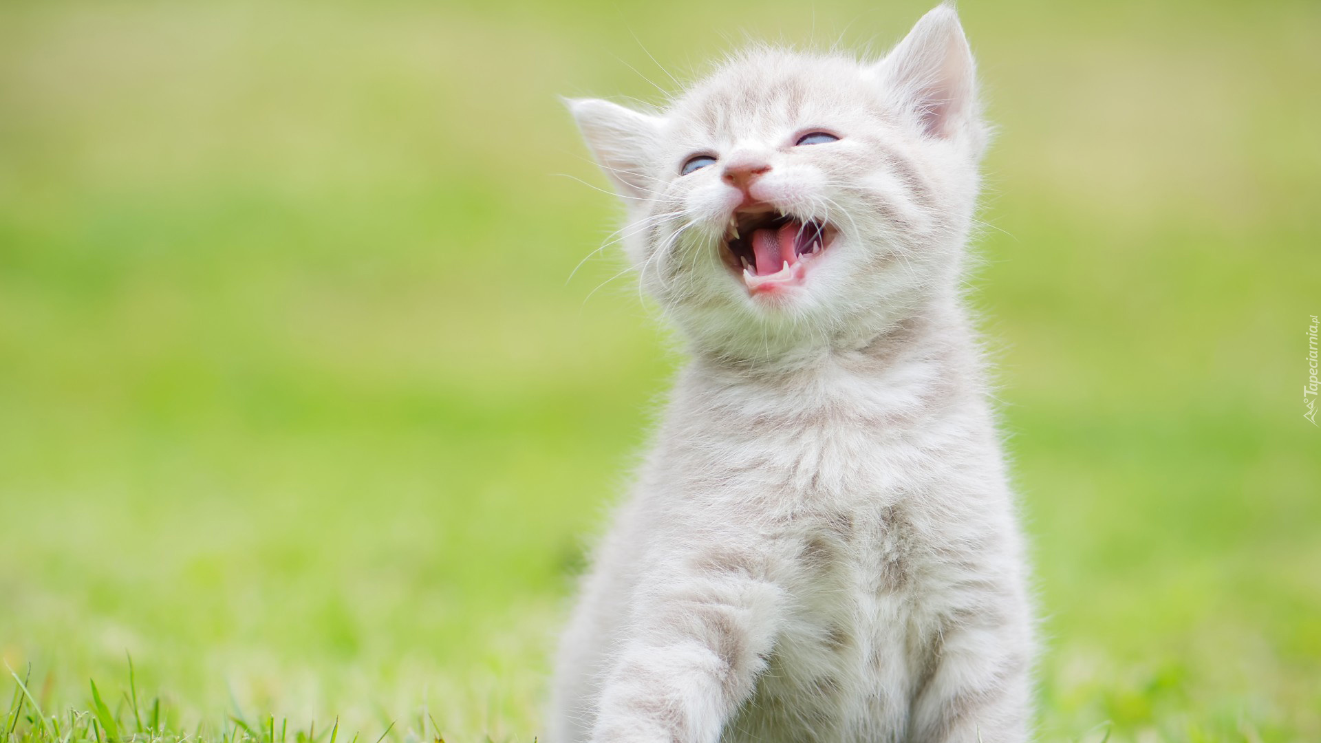 Edytor tapety: Uśmiechnięty mały kotek na trawie