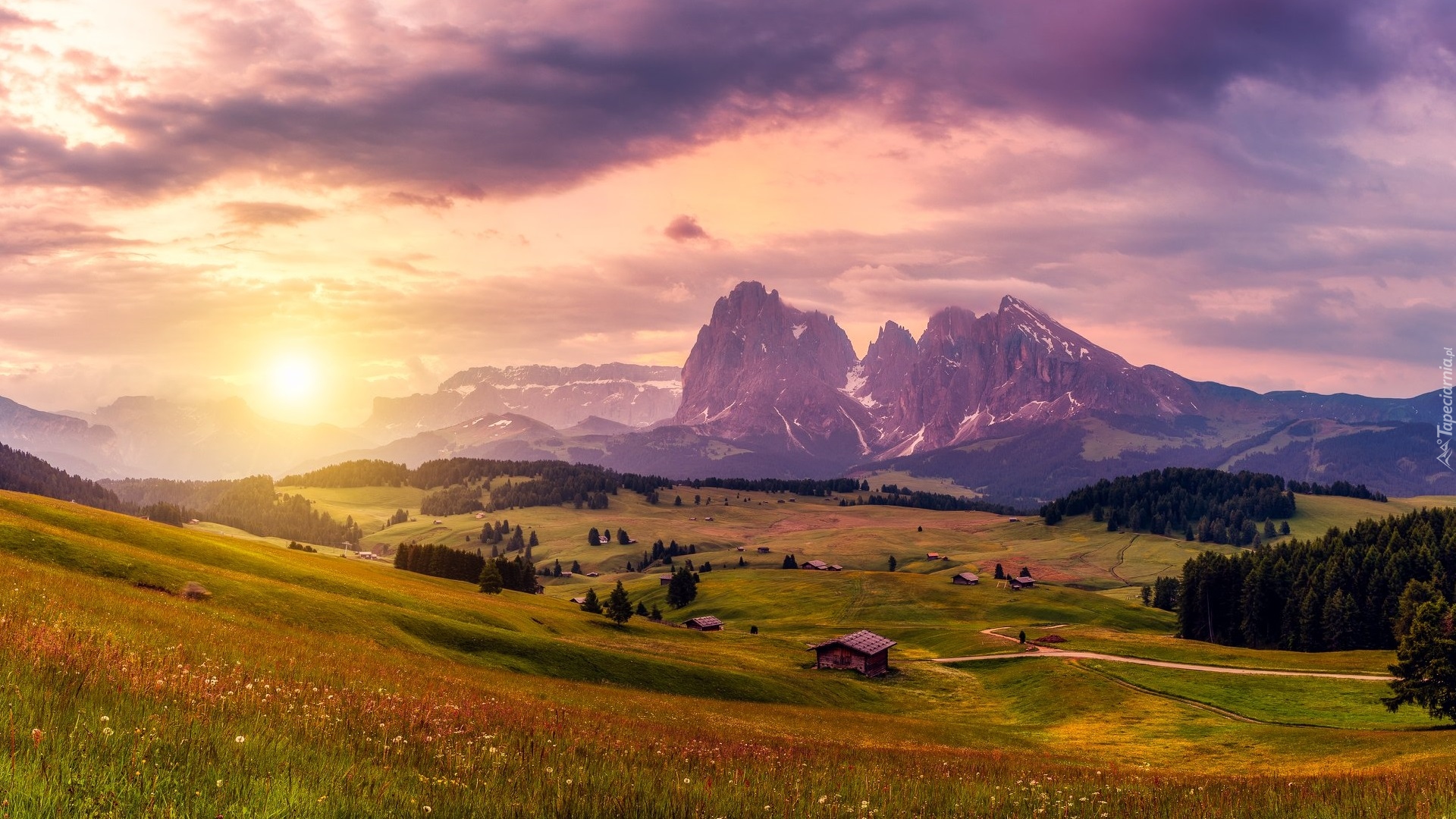 Edytor tapety: Płaskowyż Seiser Alm w Dolomitach o poranku