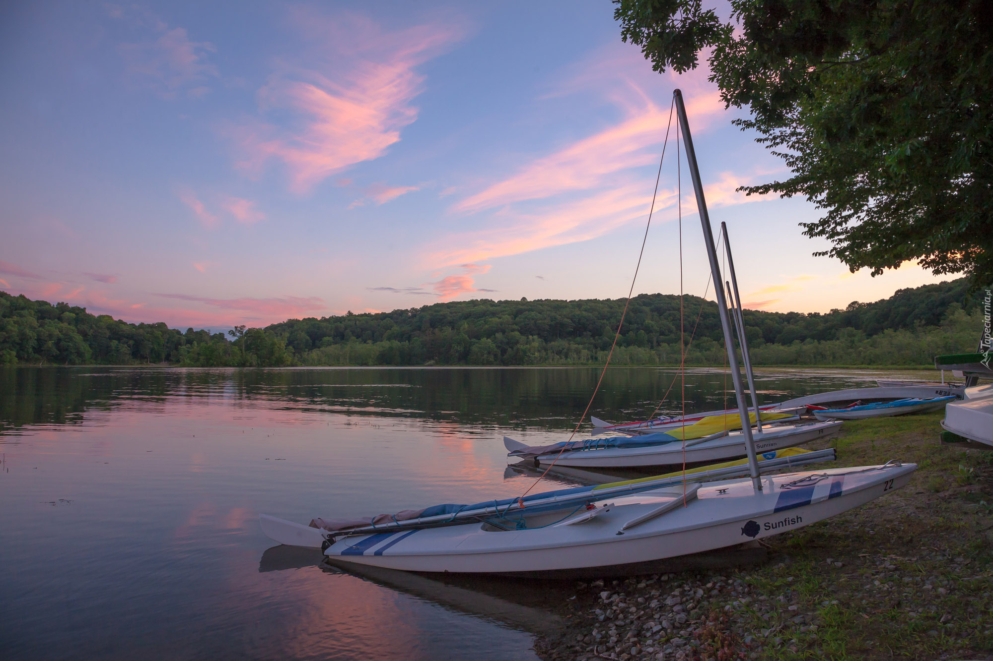 Edytor tapety: Żaglówki na brzegu jeziora