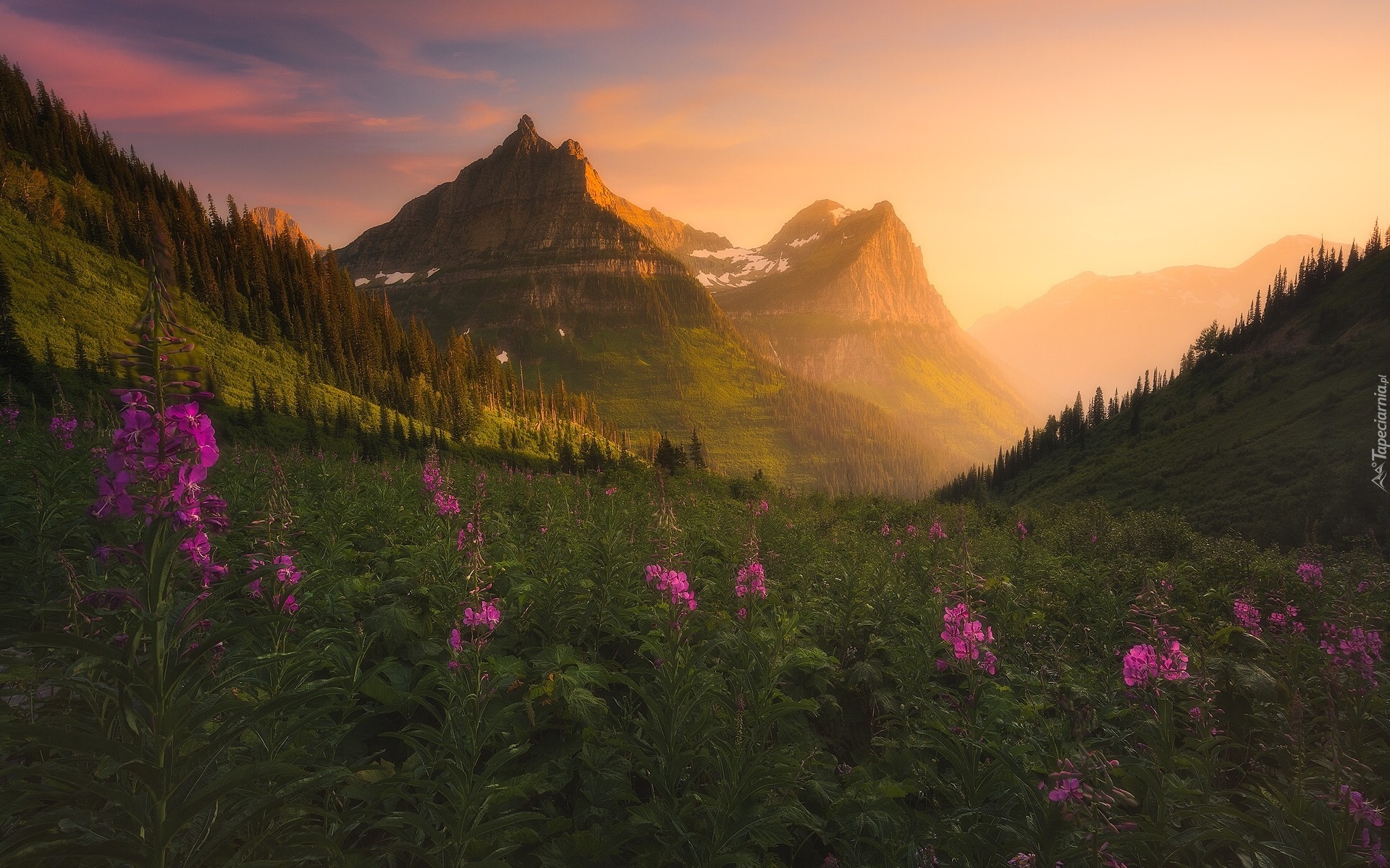 Edytor tapety: Kwiaty na łące w rozświetlonym Parku Narodowym Glacier