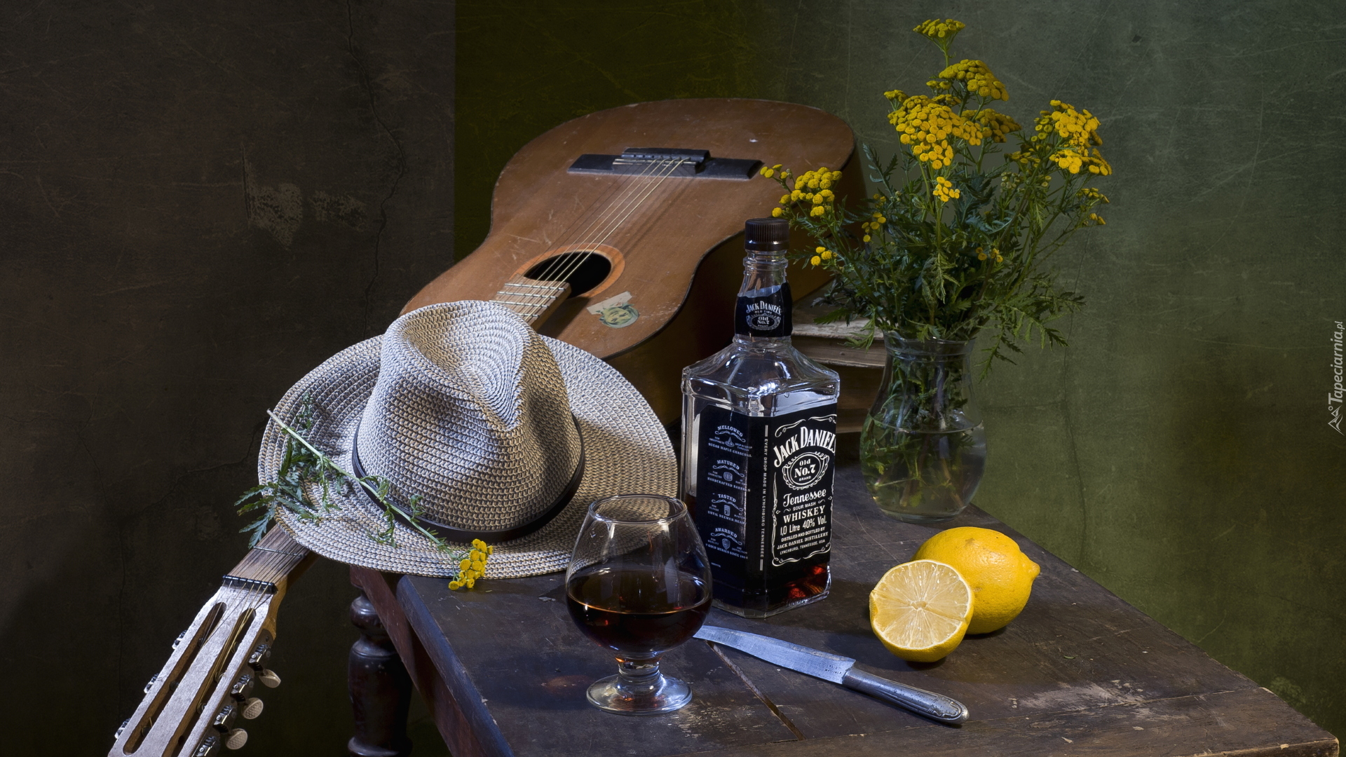 Edytor tapety: Kompozycja z gitarą i kapeluszem