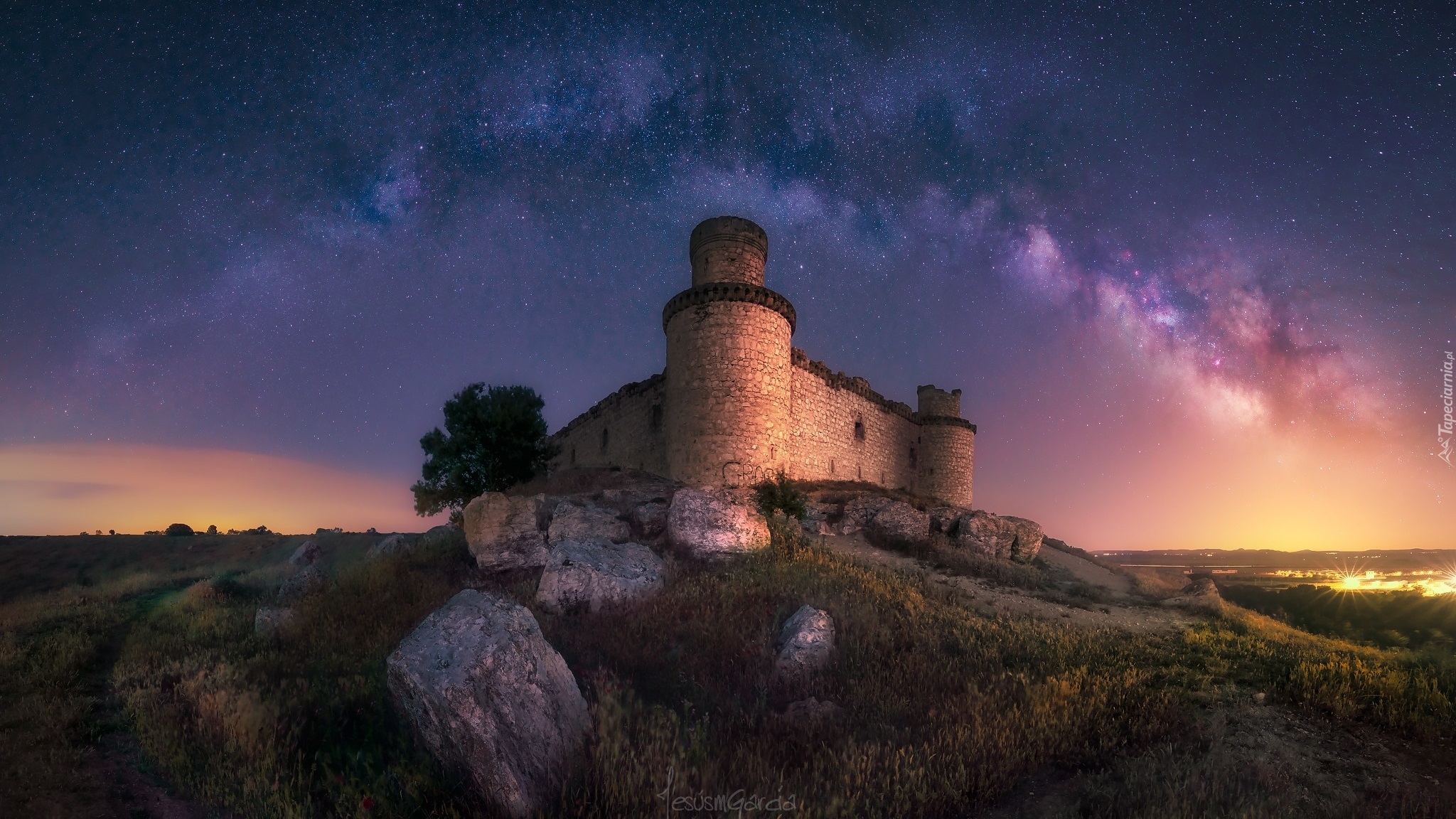 Edytor tapety: Droga Mleczna nad zamkiem Barcience w Toledo
