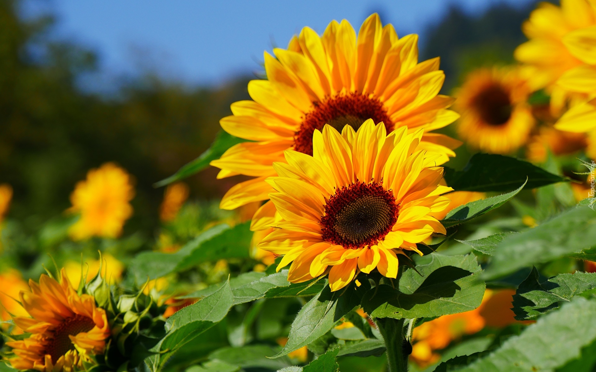 Edytor tapety: Kwitnące słoneczniki żółte