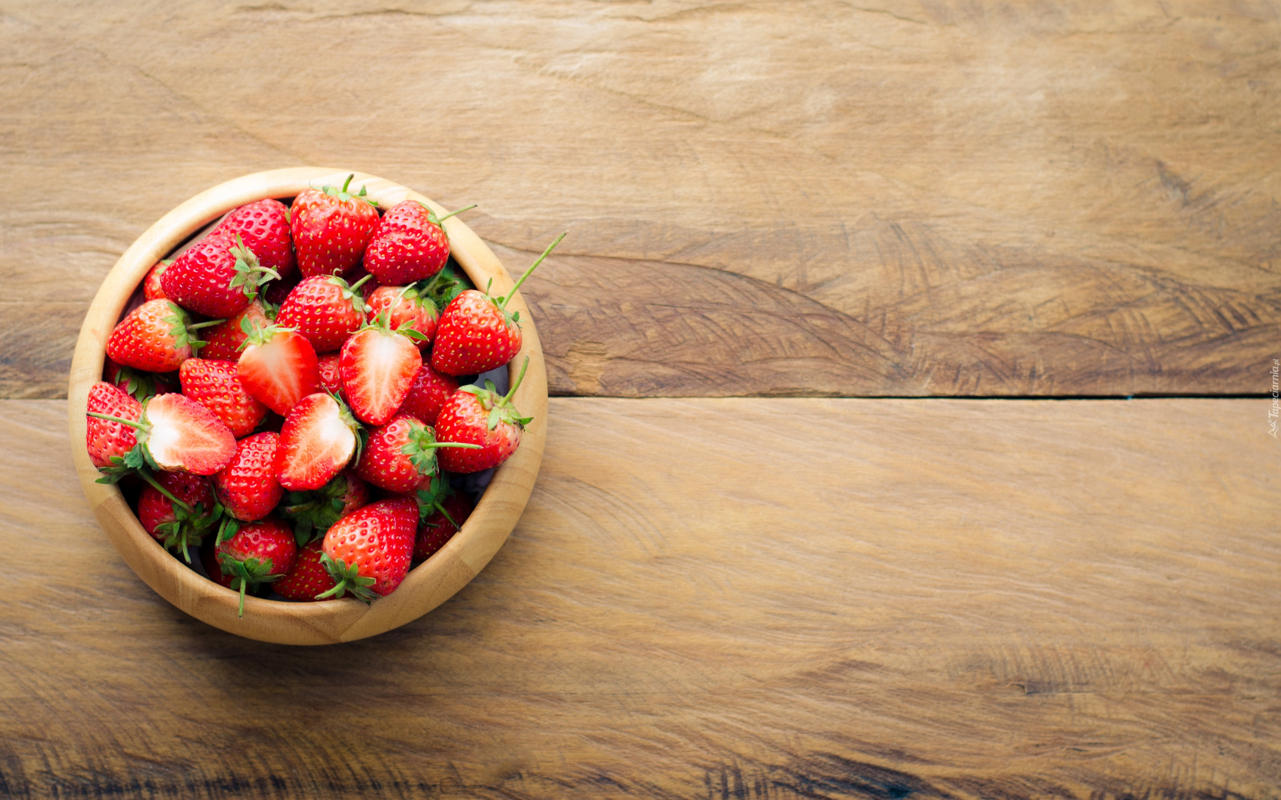 Edytor tapety: Truskawki w misce na deskach