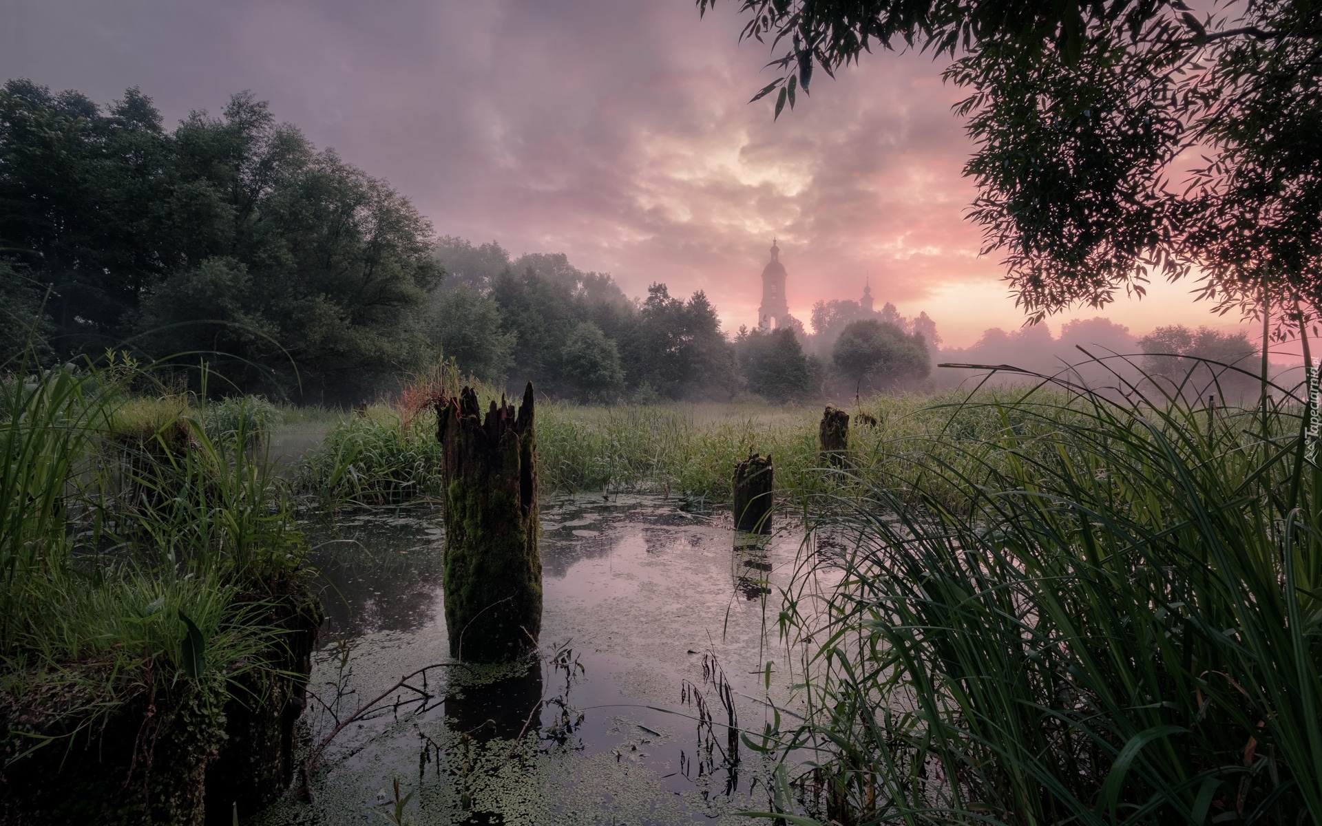 Edytor tapety: Pale i szuwary w rzece