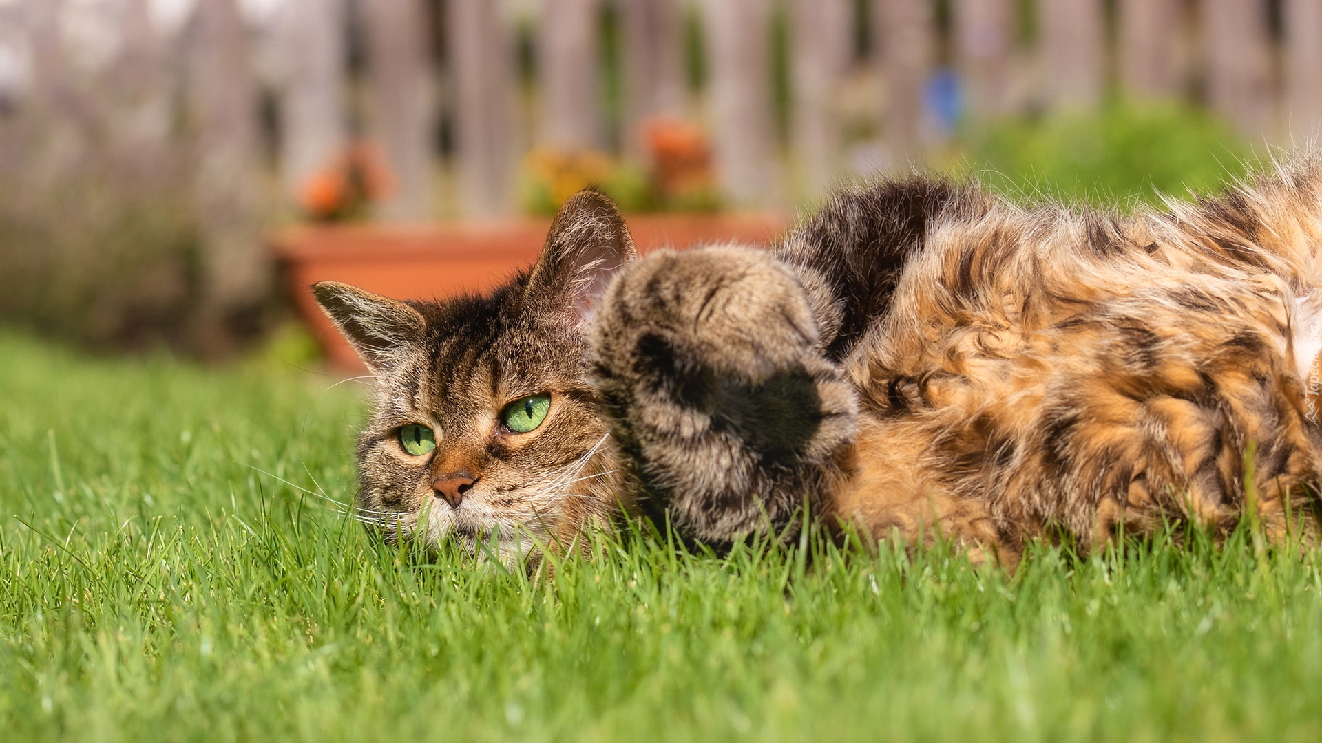 Edytor tapety: Bury kot leżący na grzbiecie