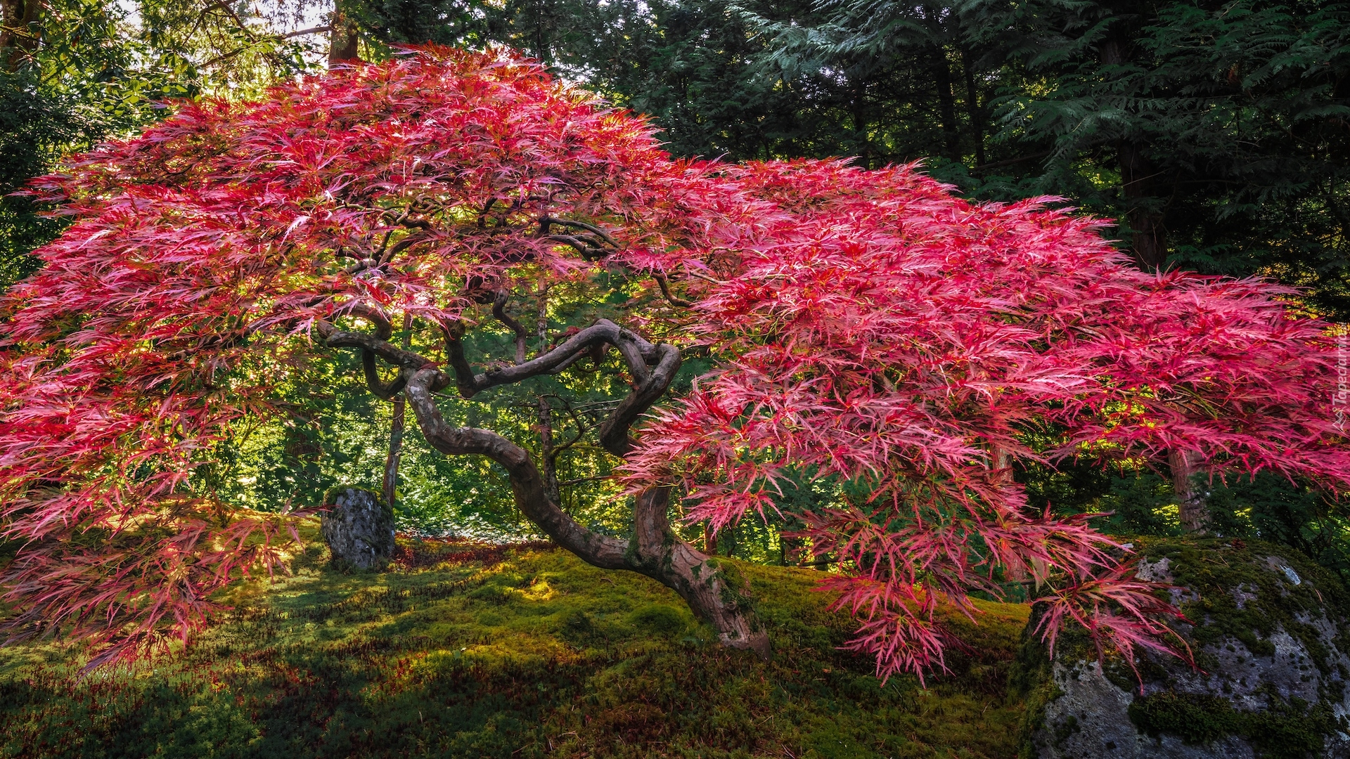 Edytor tapety: Czerwony klon palmowy w Portland Japanese Garden