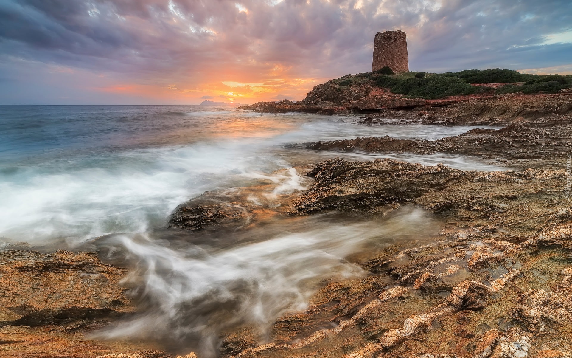 Edytor tapety: Wieża Torre Aragonese di Piscinni na włoskim wybrzeżu