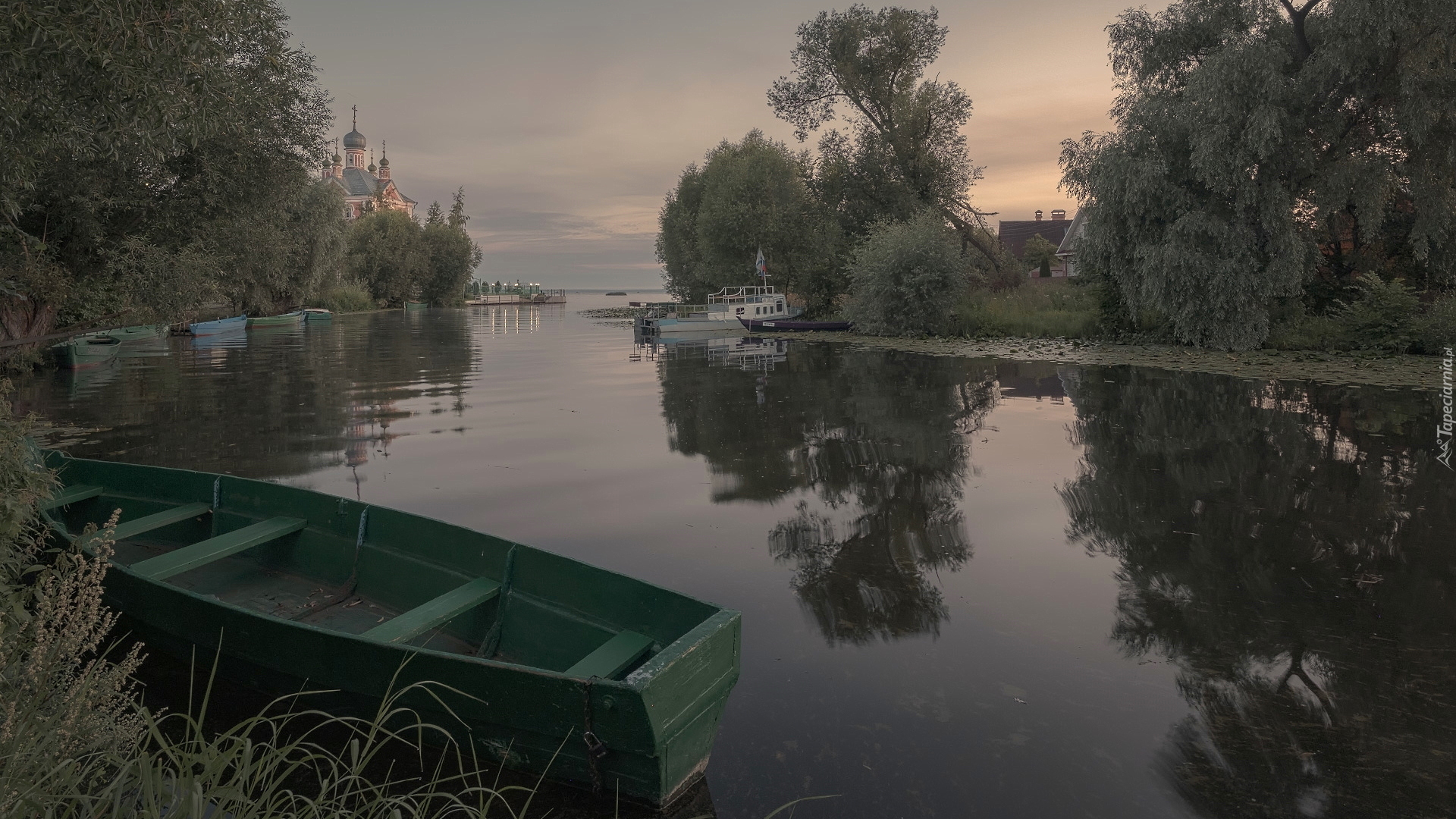 Edytor tapety: Zielona łódka na rzece Trubezh
