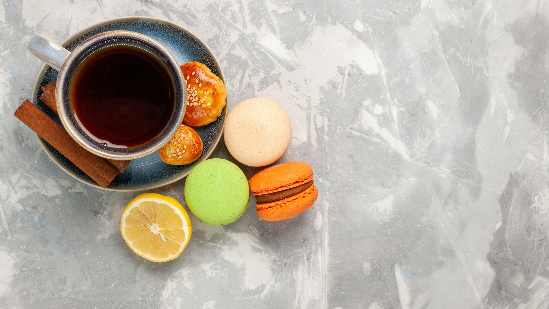 Edytor tapety: Makaroniki obok filiżanki z kawą