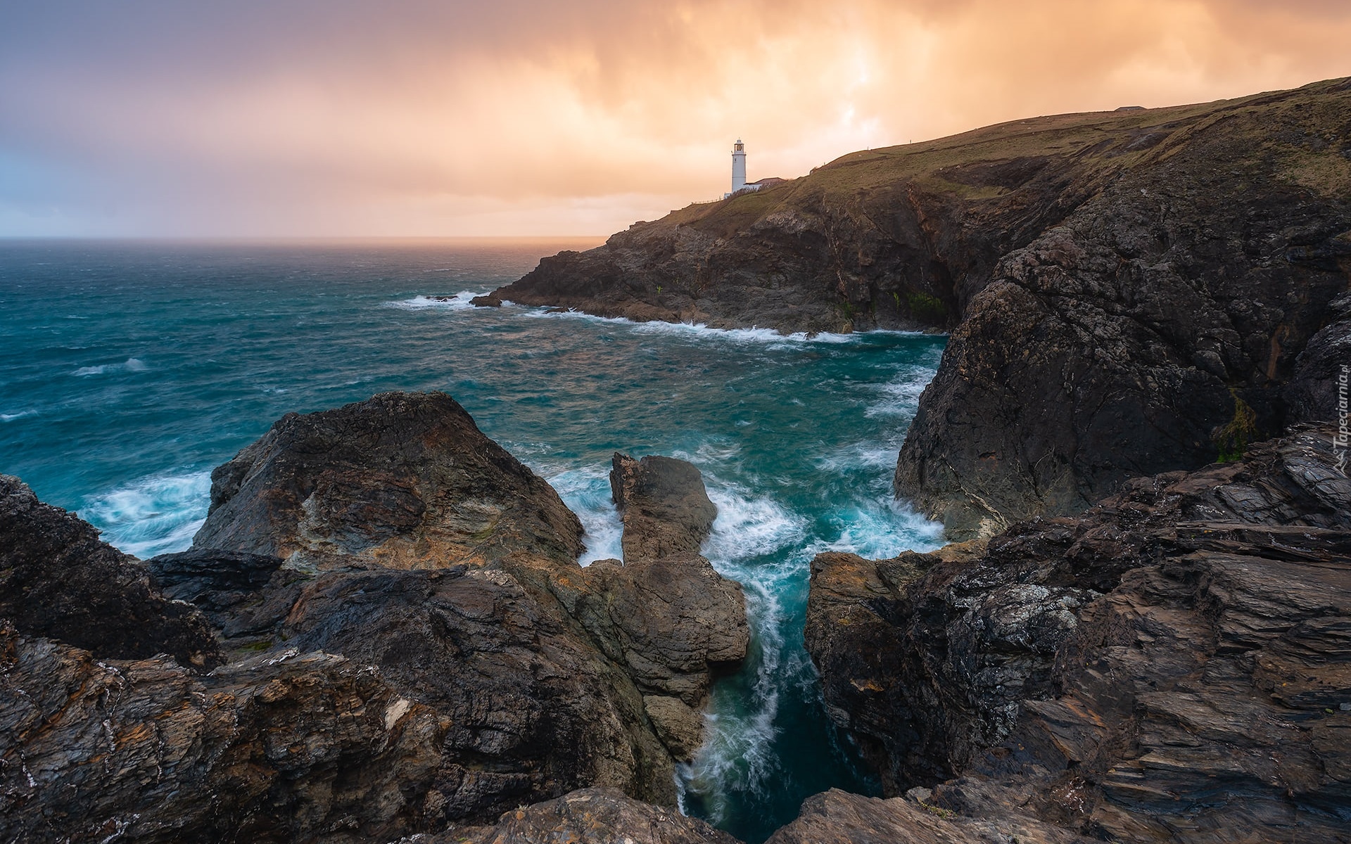 Edytor tapety: Latarnia morska na skałach nad morzem