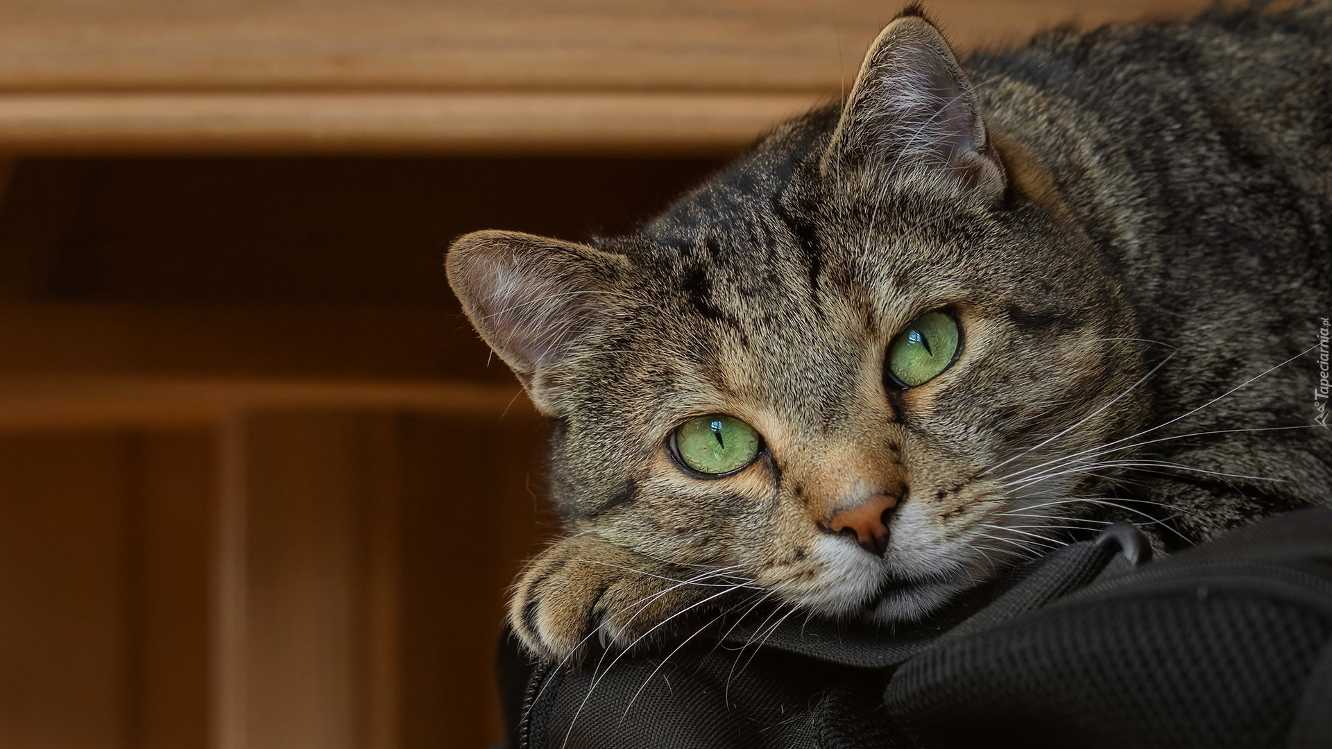 Edytor tapety: Mordka burego zielonookiego kota