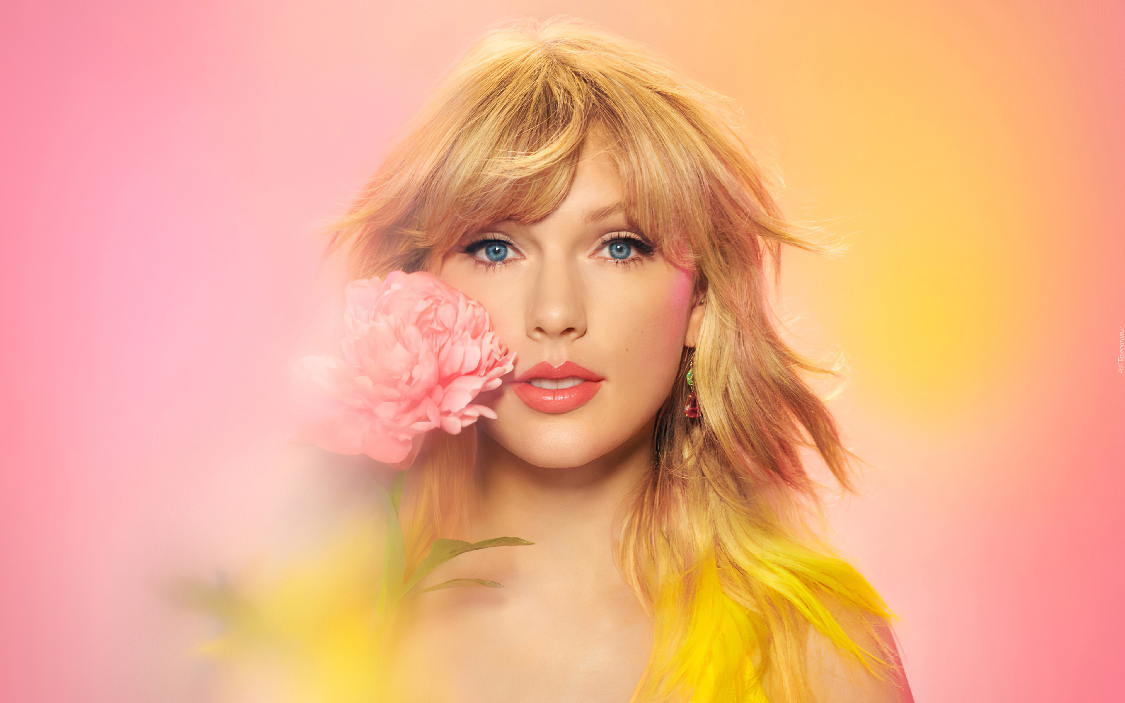 Edytor tapety: Taylor Swift z różowym kwiatkiem
