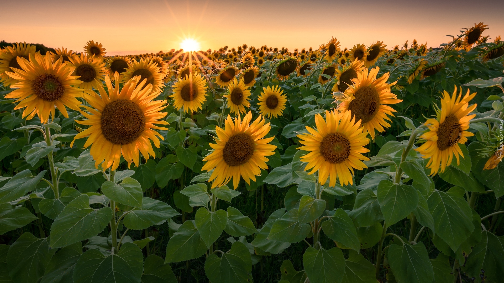 Edytor tapety: Słoneczniki w promieniach słońca