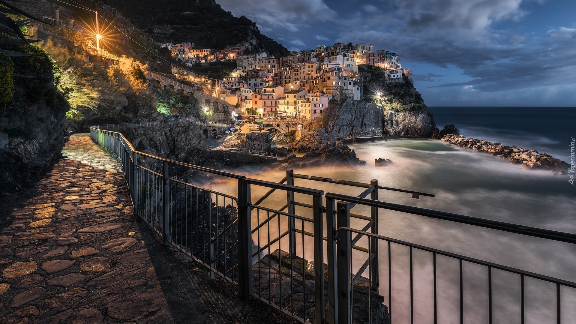 Edytor tapety: Widok na oświetlone domy w Manaroli