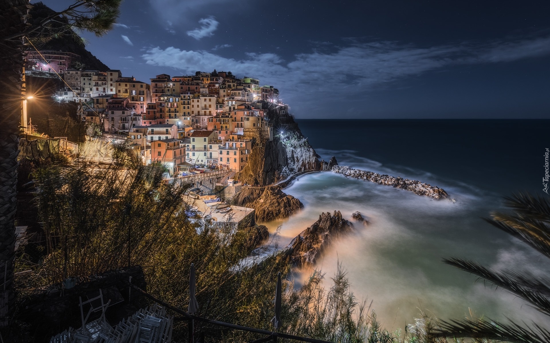 Edytor tapety: Oświetlona Manarola nad Morzem Liguryjskim