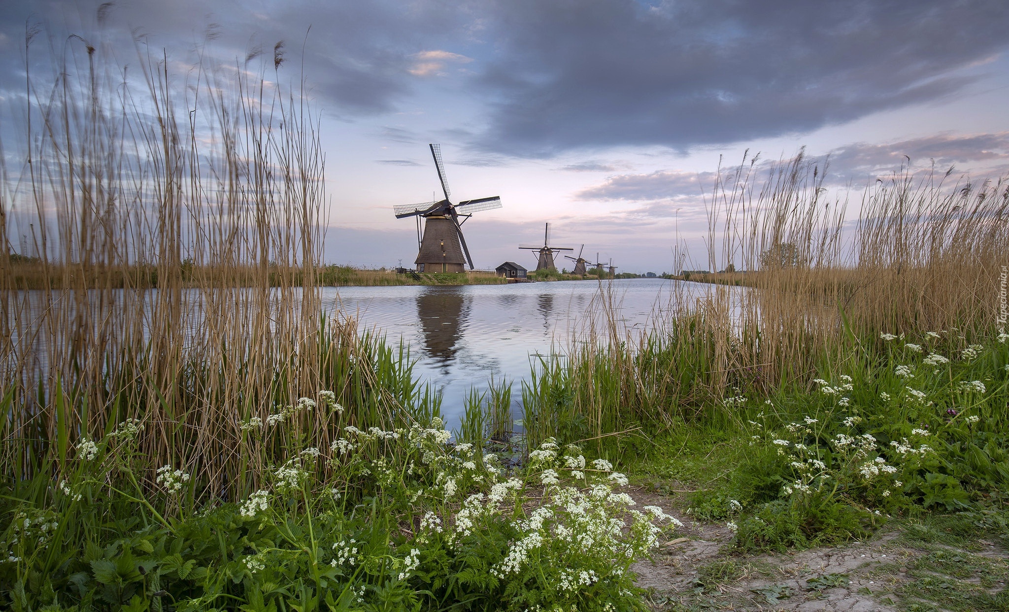 Edytor tapety: Wiatraki nad rzeką