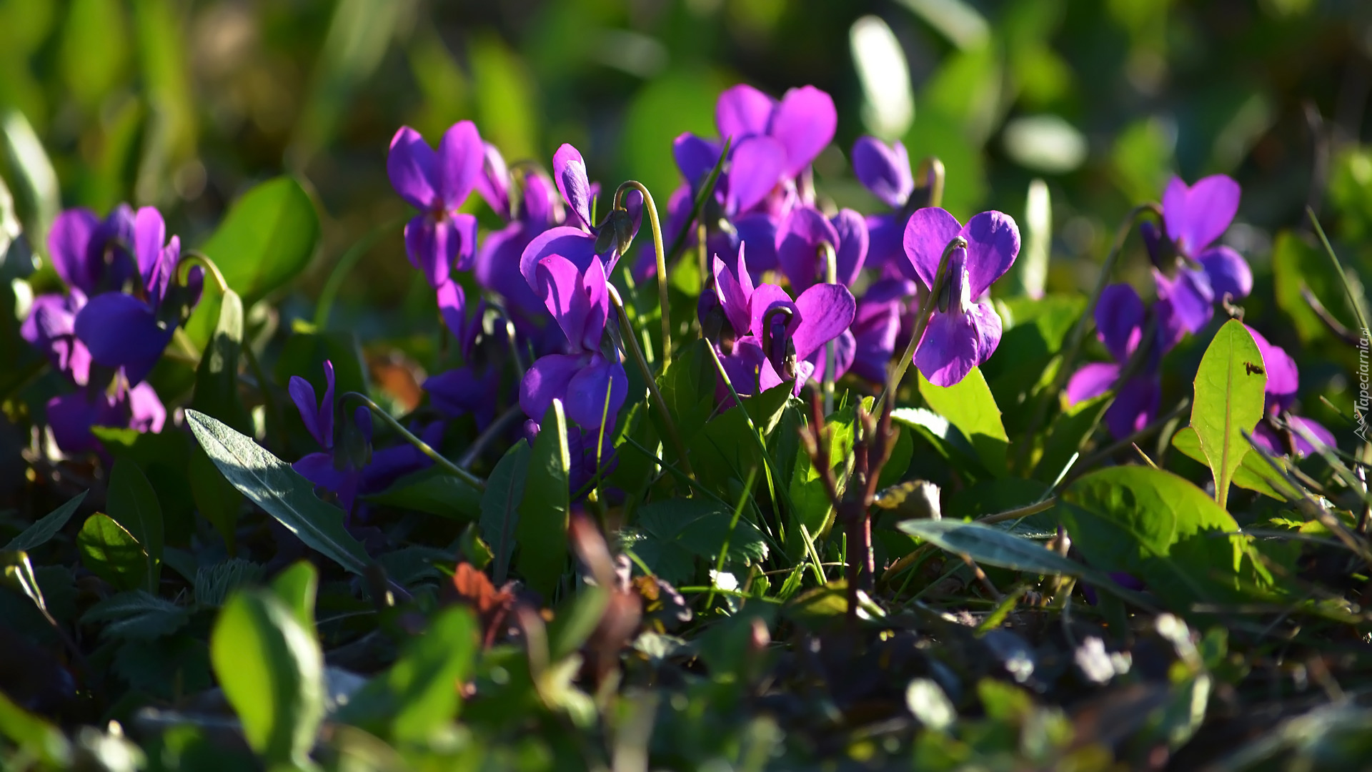 Edytor tapety: Fioletowe fiołki wonne w słońcu