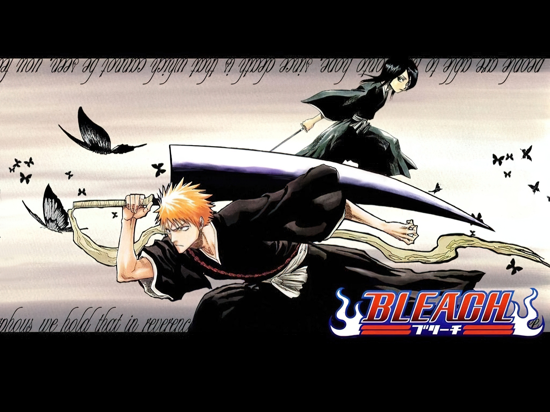 Edytor tapety: Bleach, napisy, ludzie, miecz