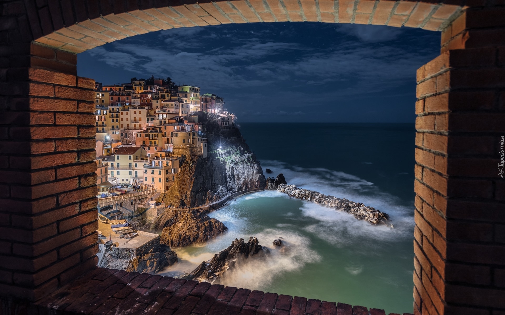 Edytor tapety: Widok z okna na morze i miasteczko Manarola