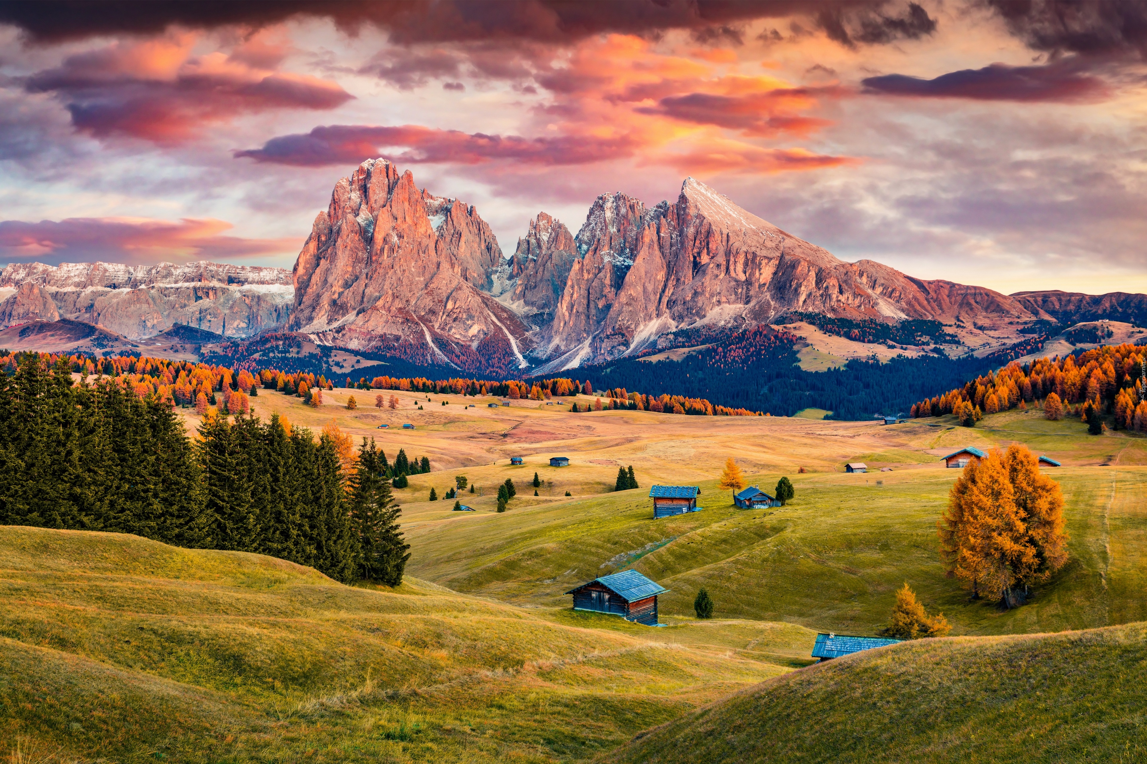 Edytor tapety: Płaskowyż Seiser Alm i góry Sassolungo
