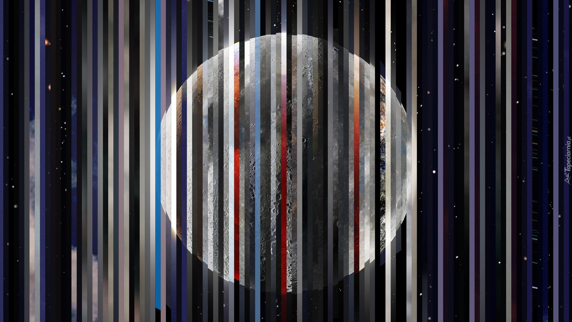 Edytor tapety: Kolorowe pasy na tle pełni księżyca