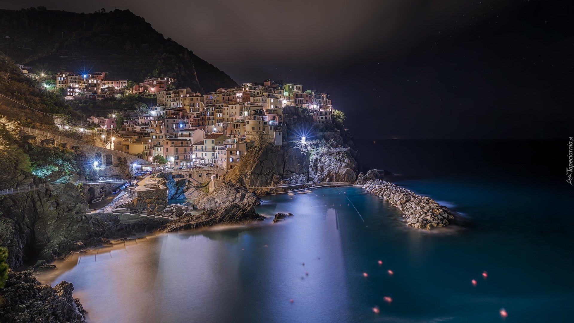 Edytor tapety: Oświetlone domy we włoskim miasteczku Manarola nocą